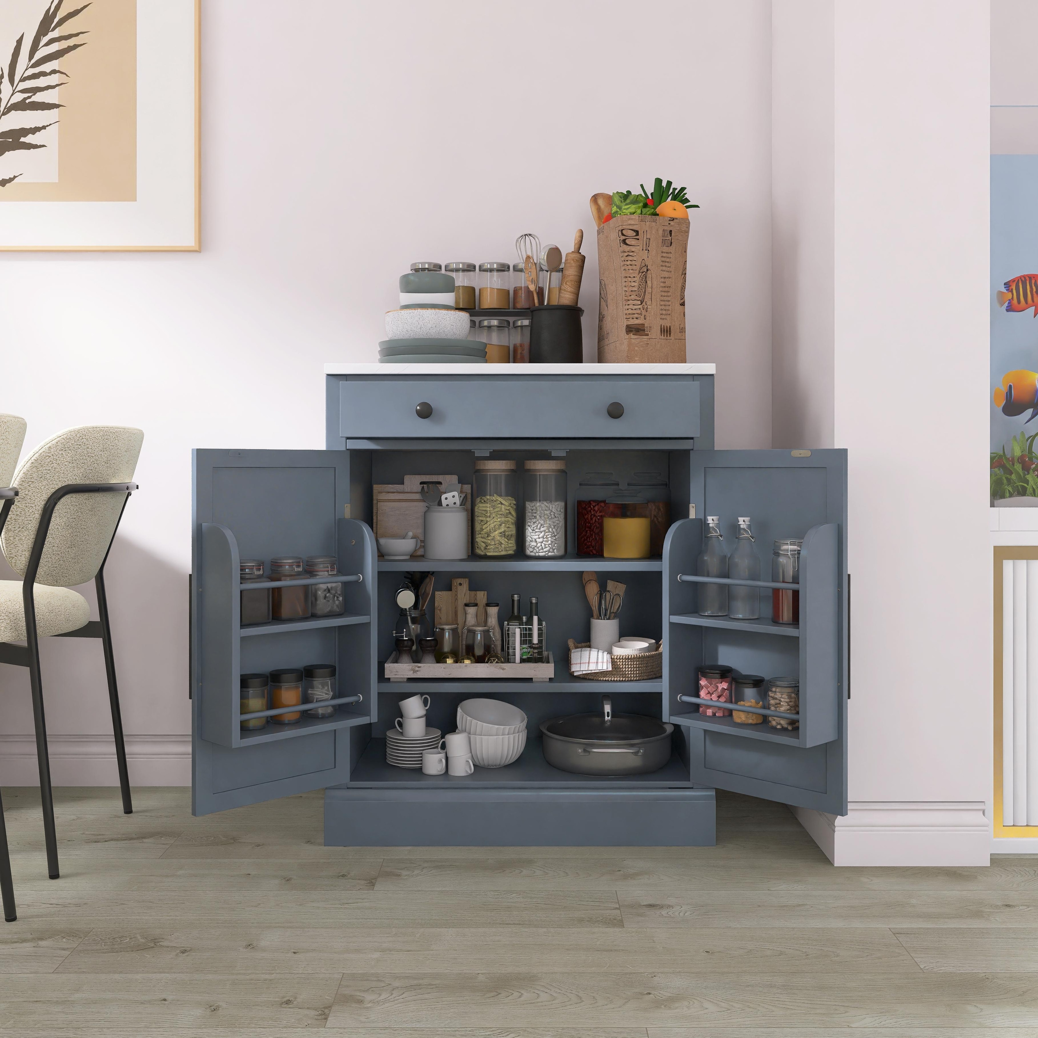 ARTCHIRLY Modern Kitchen Pantry, Buffet Food Storage, Coffee Bar Cabinet with Drawer, 2 Adjustable Shelves and 2 Door Shelves