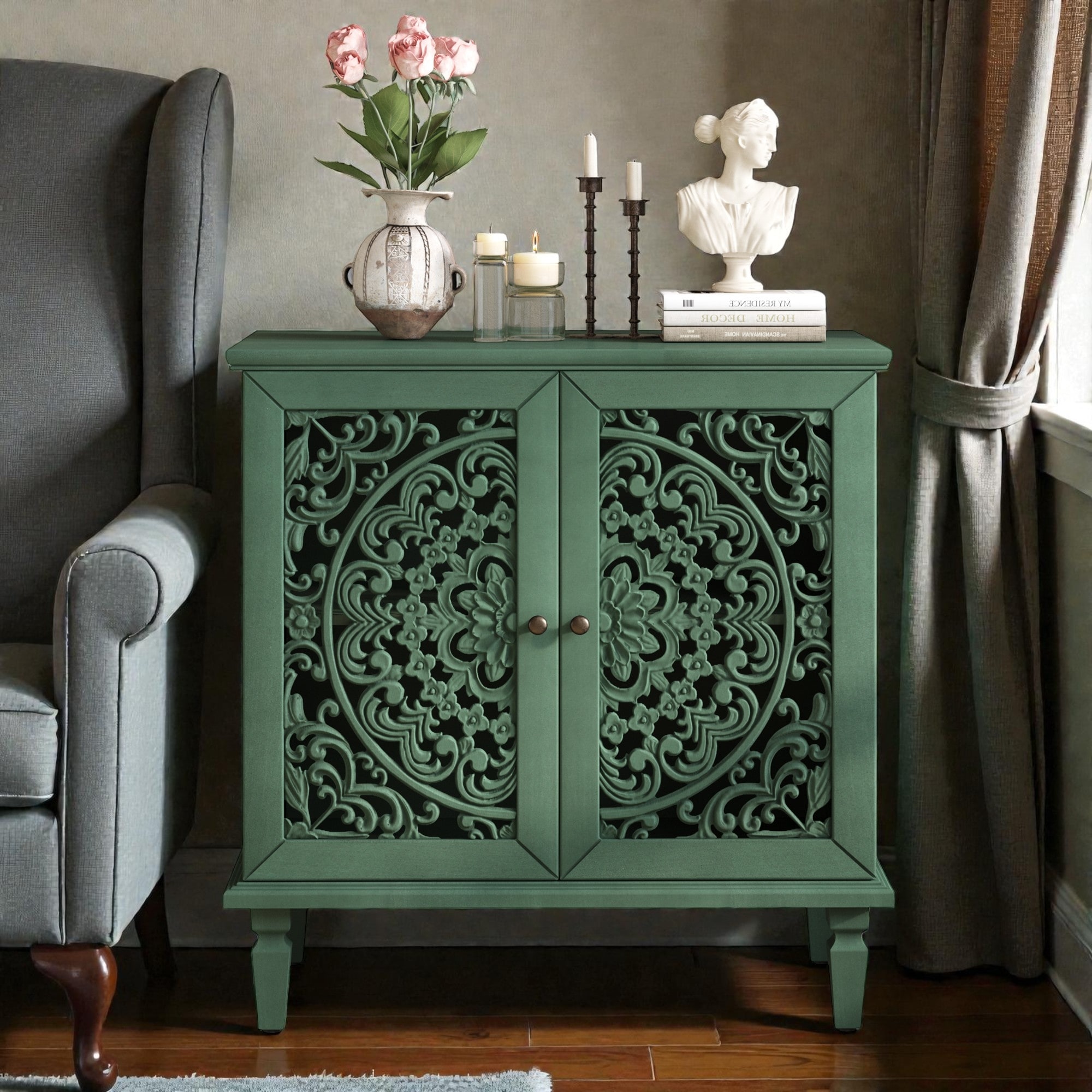 Decorative Cabinet, Control Cabinet with 2 Doors, Floral Carved Sideboard, Buffet Cabinet and Entryway Cabinet for Entryway