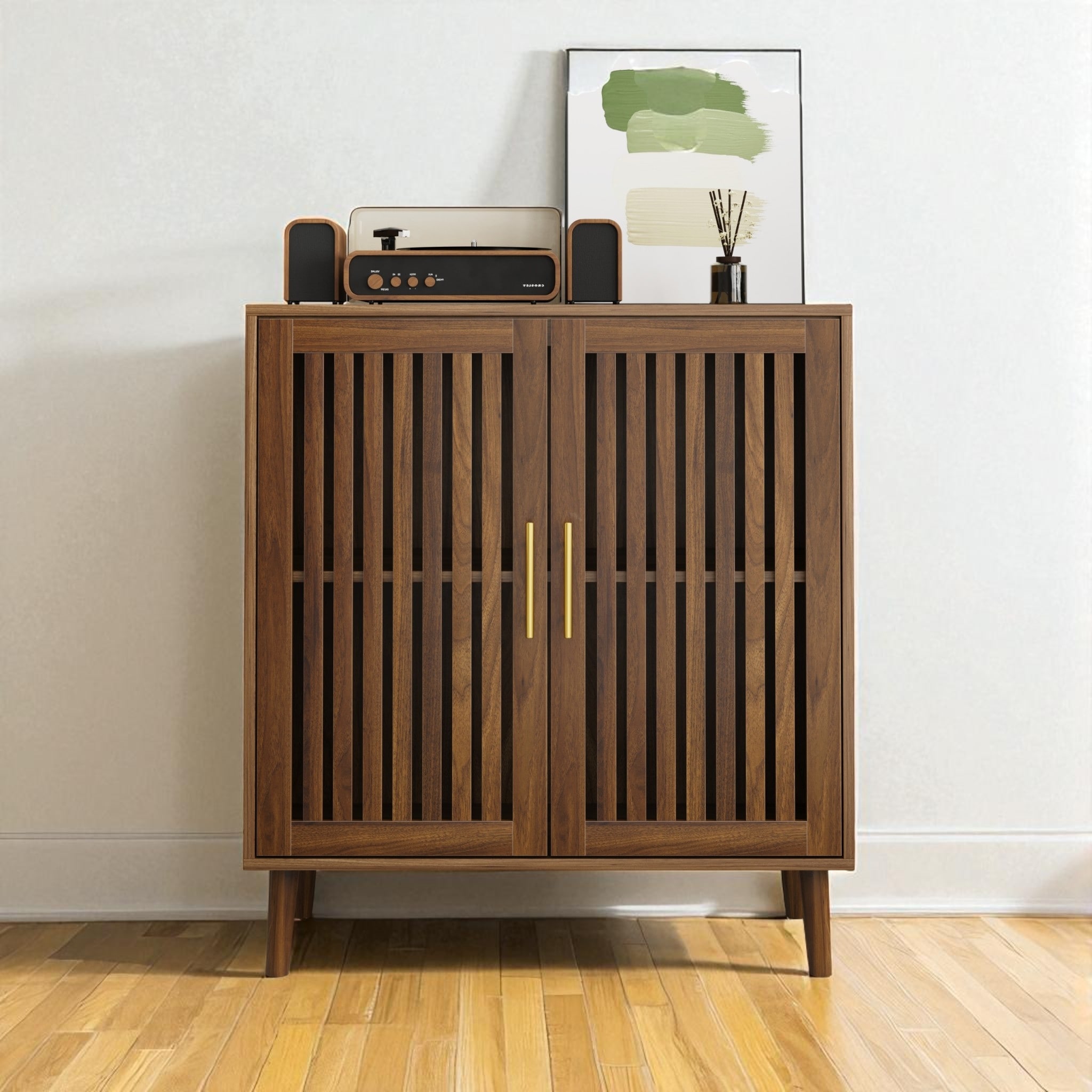 Farmhouse Sideboard Buffet Cabinet with Storage, Walnut Coffee Bar Cabinet with Louvered Doors & Adjustable Shelves