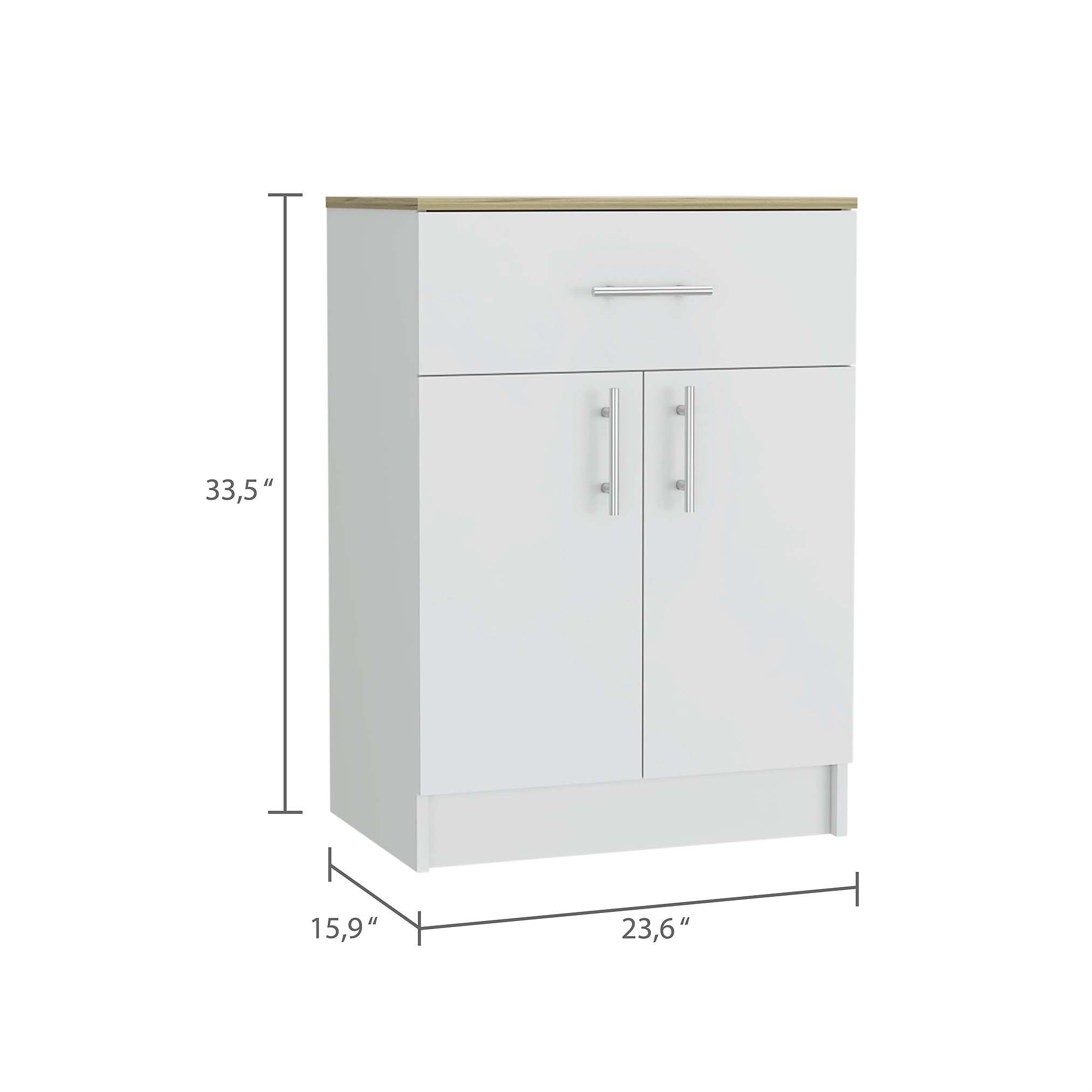 Compact Kitchen Pantry with Drawer, 2 Cabinets, and Microwave Stand for Efficient Storage and Stylish Organization, White/Black