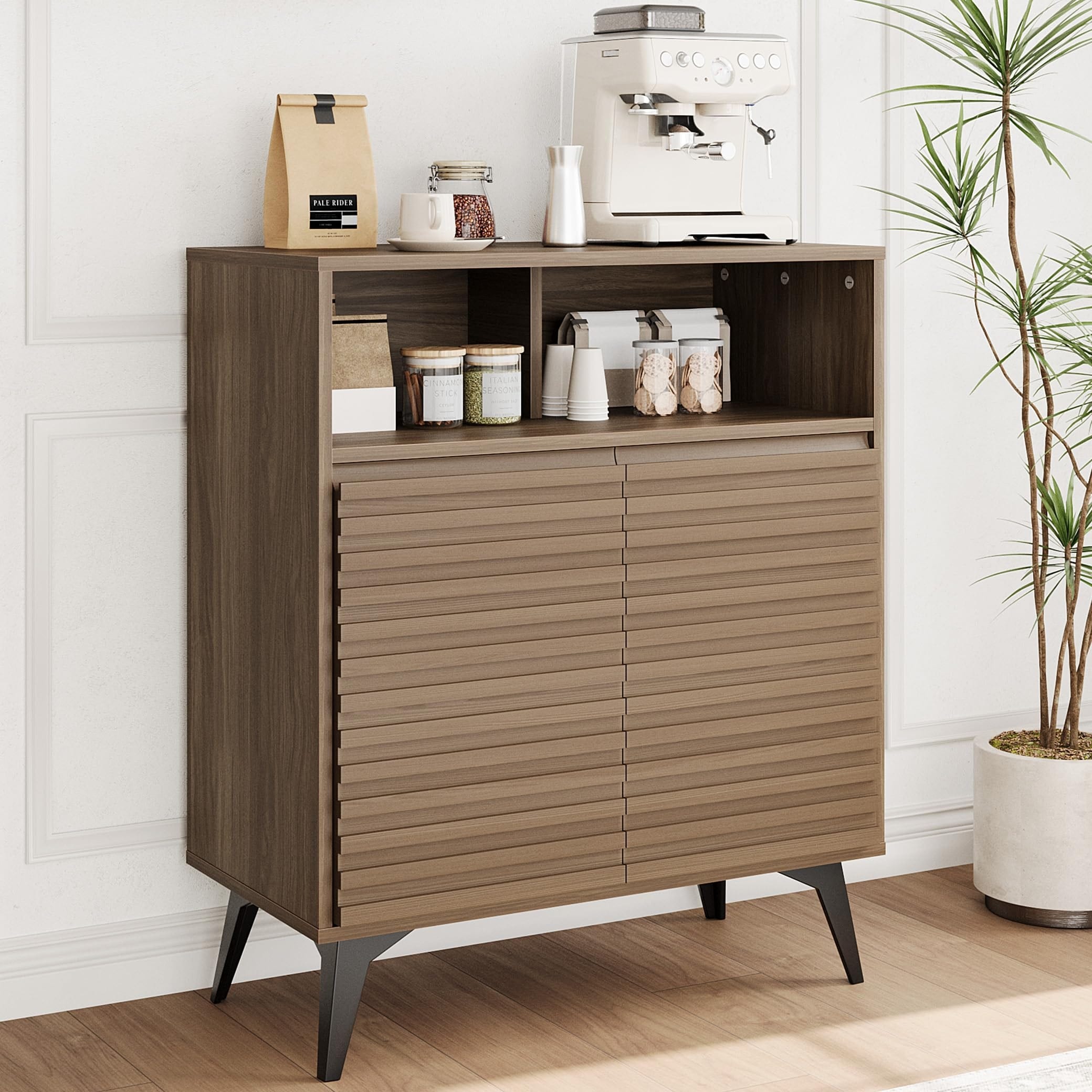 Fluted Storage Cabinet, Sideboard Buffet Cabinet with Storage & Adjustable Shelves for Living Room, Kitchen, Entryway