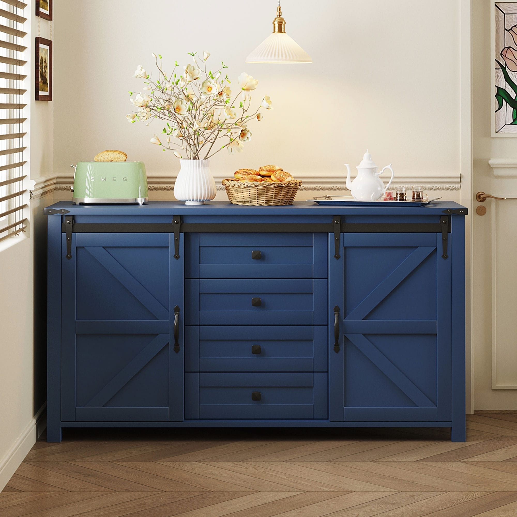 Farmhouse Storage Cabinet with Sliding Barn Doors and 4 Drawers