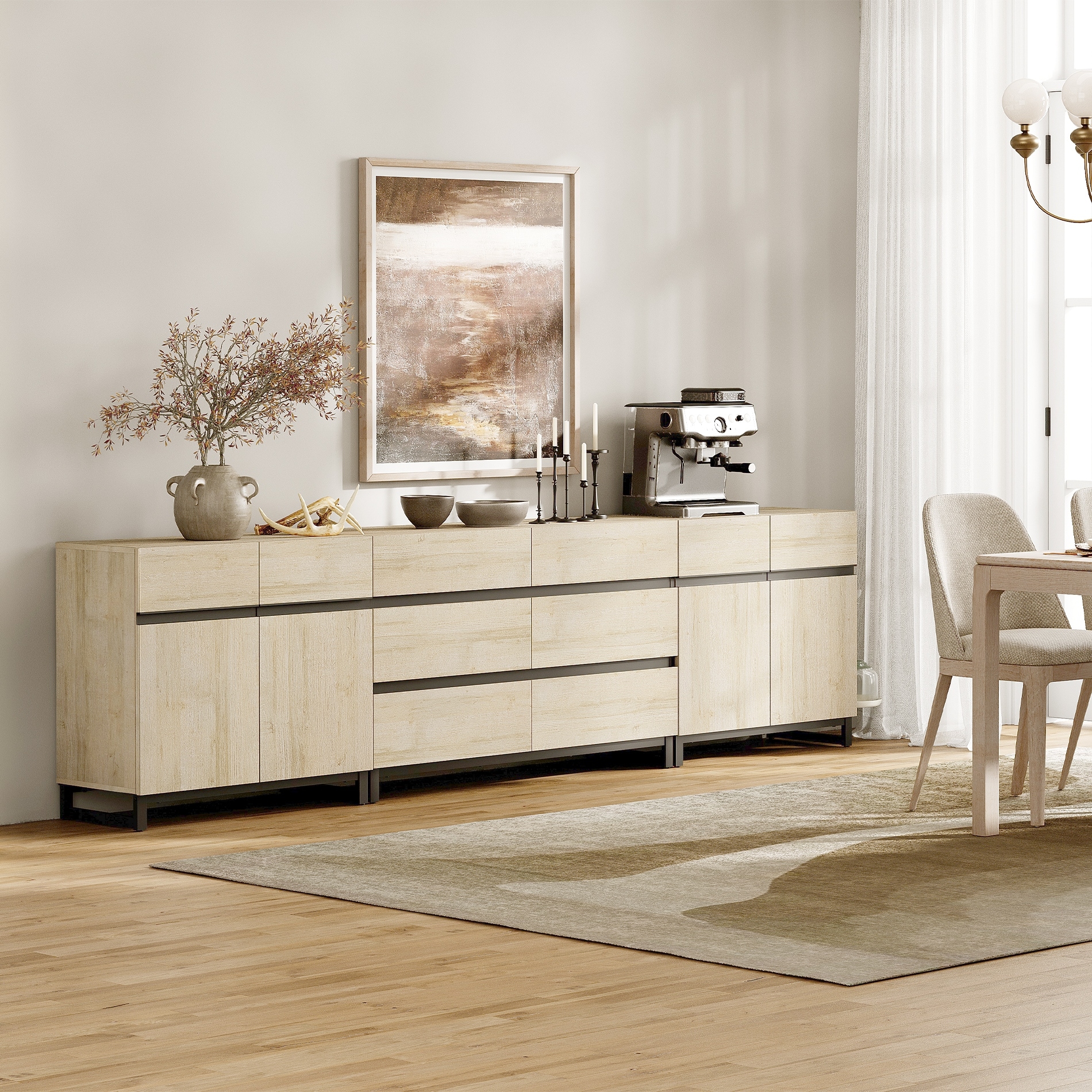 Modern Credenza with Adjustable Shelves, Drawers & Cord Management - Contemporary Storage Cabinet