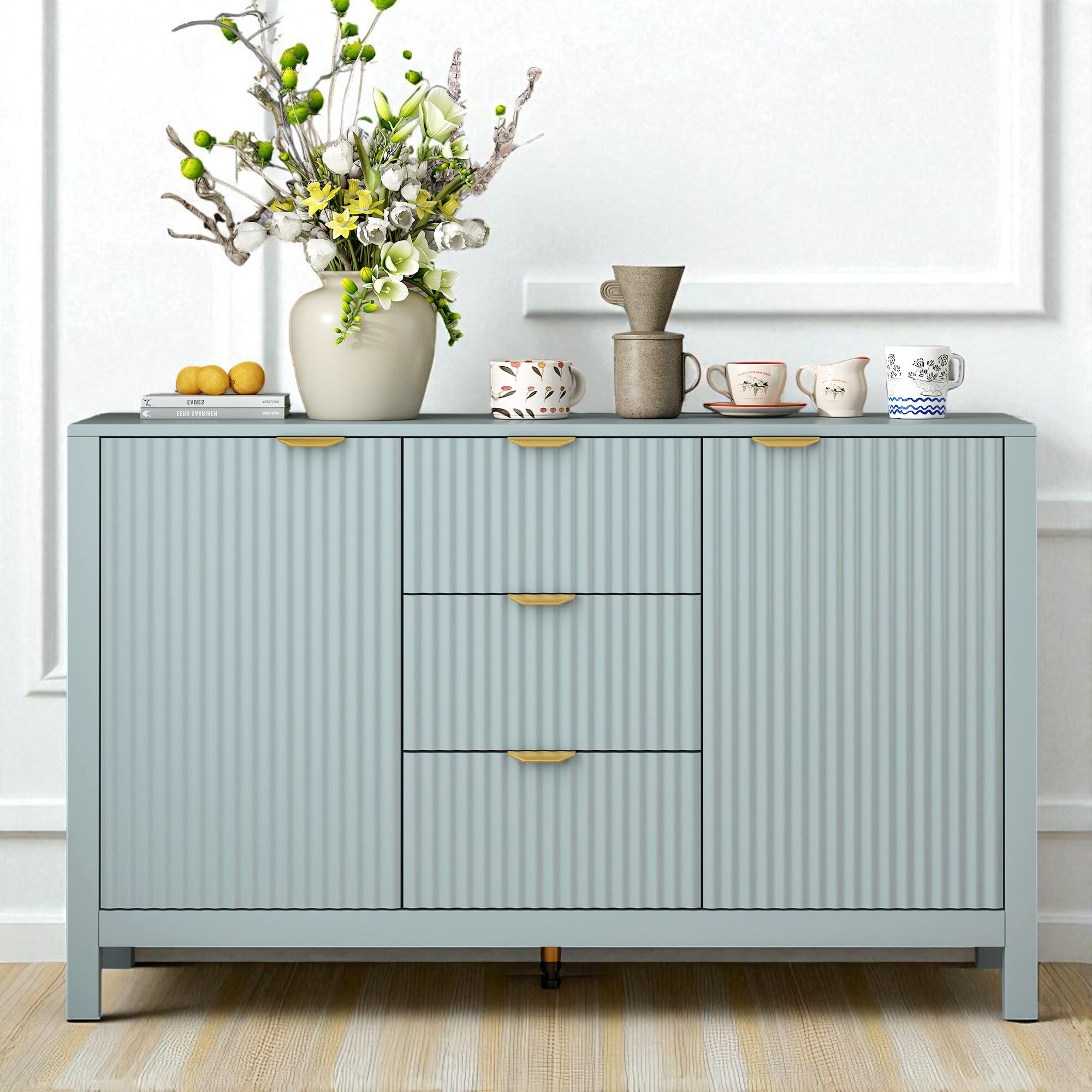 47.2" Wave Design Sideboard with 3 Drawers, Adjustable Shelves & Soft-Close Doors, Matte Finish Console Table for Dining Room