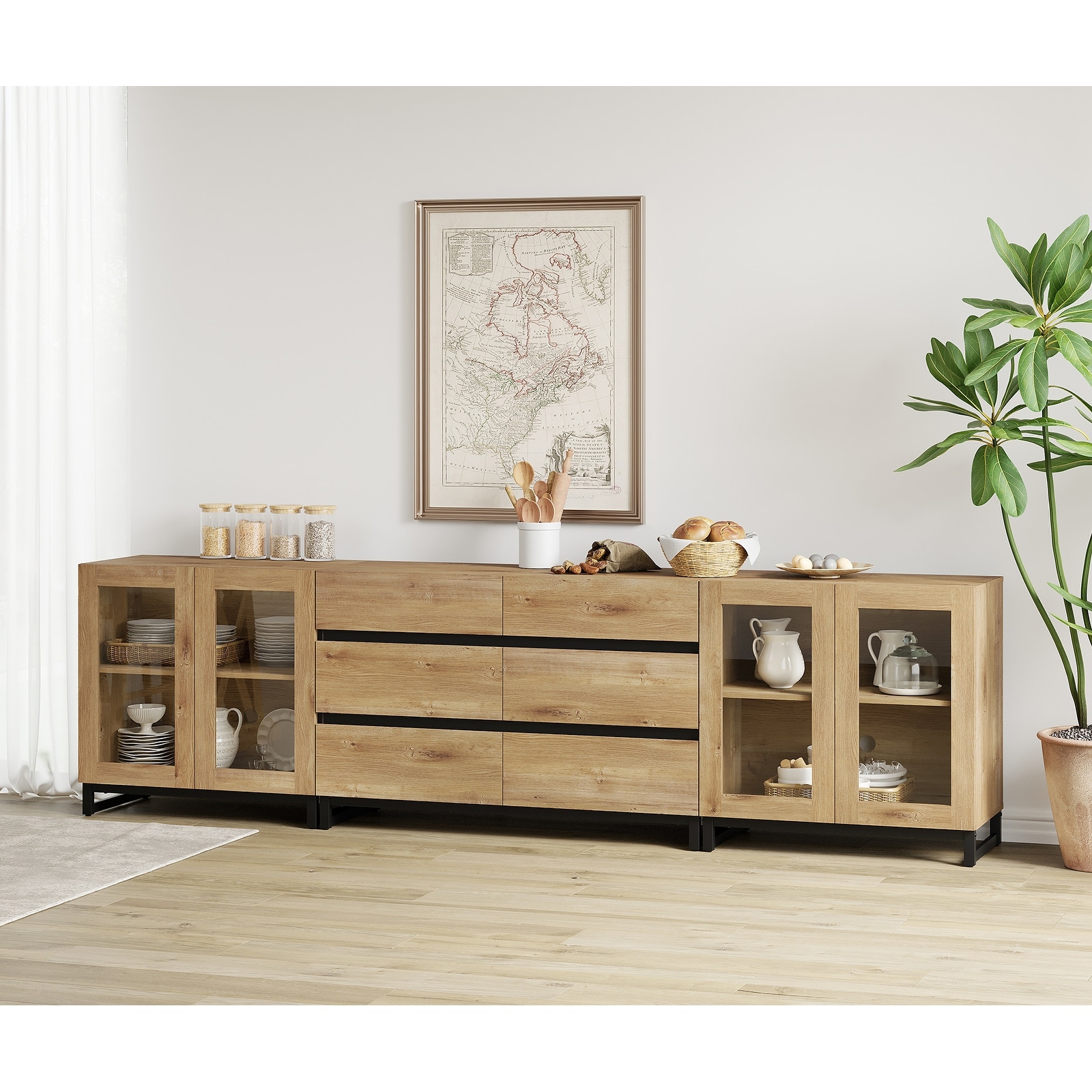 WAMPAT 3 in 1 Multifunctional Sideboard Buffet Cabinets with 6 Glass Doors, Coffee Bar Cabinet Storage Cabinet for Kitchen