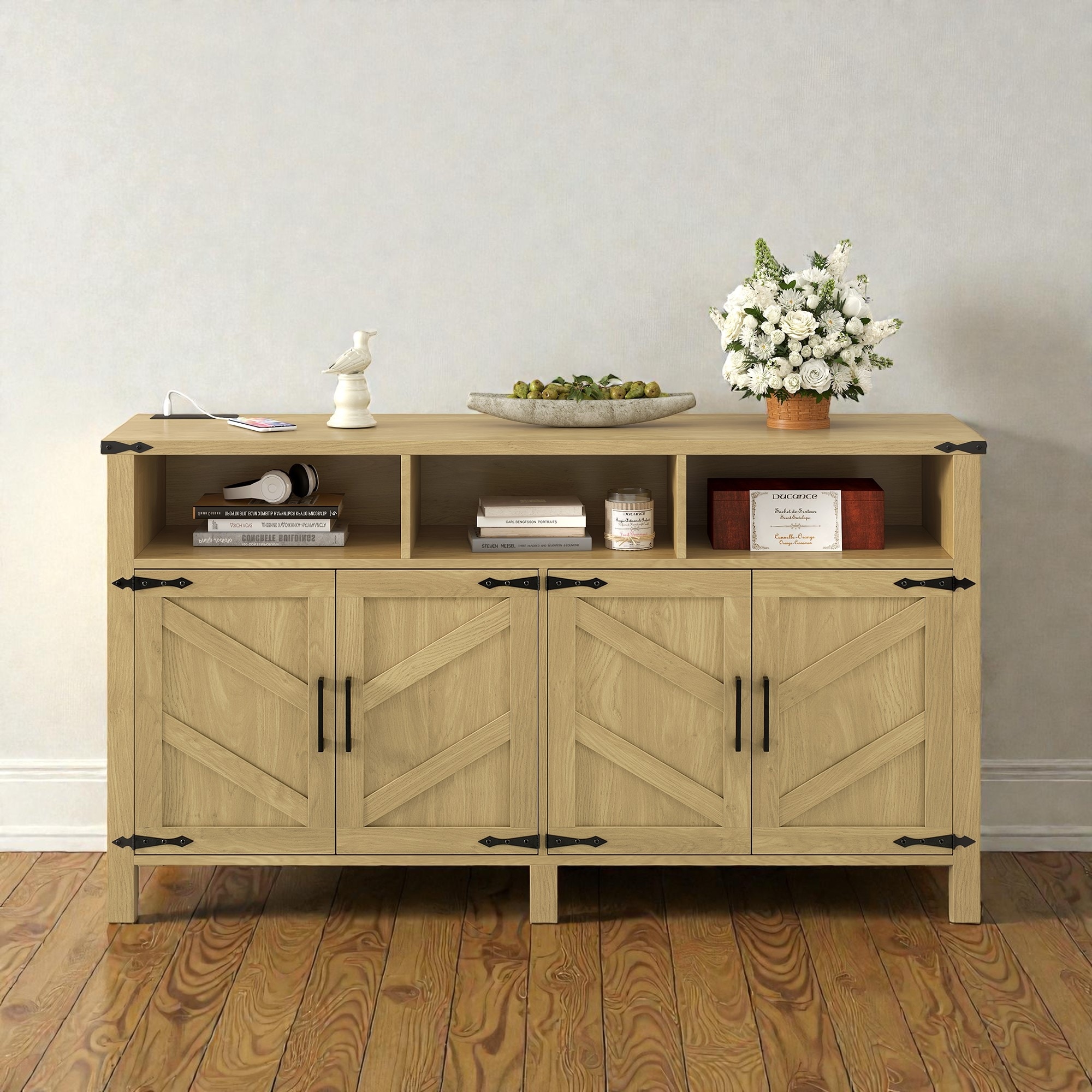 59" Sideboard Buffet with 4 Doors, Power Outlets, USB Ports, Adjustable Shelves and Half-Open Storage Cabinet, Entryway Cabinet