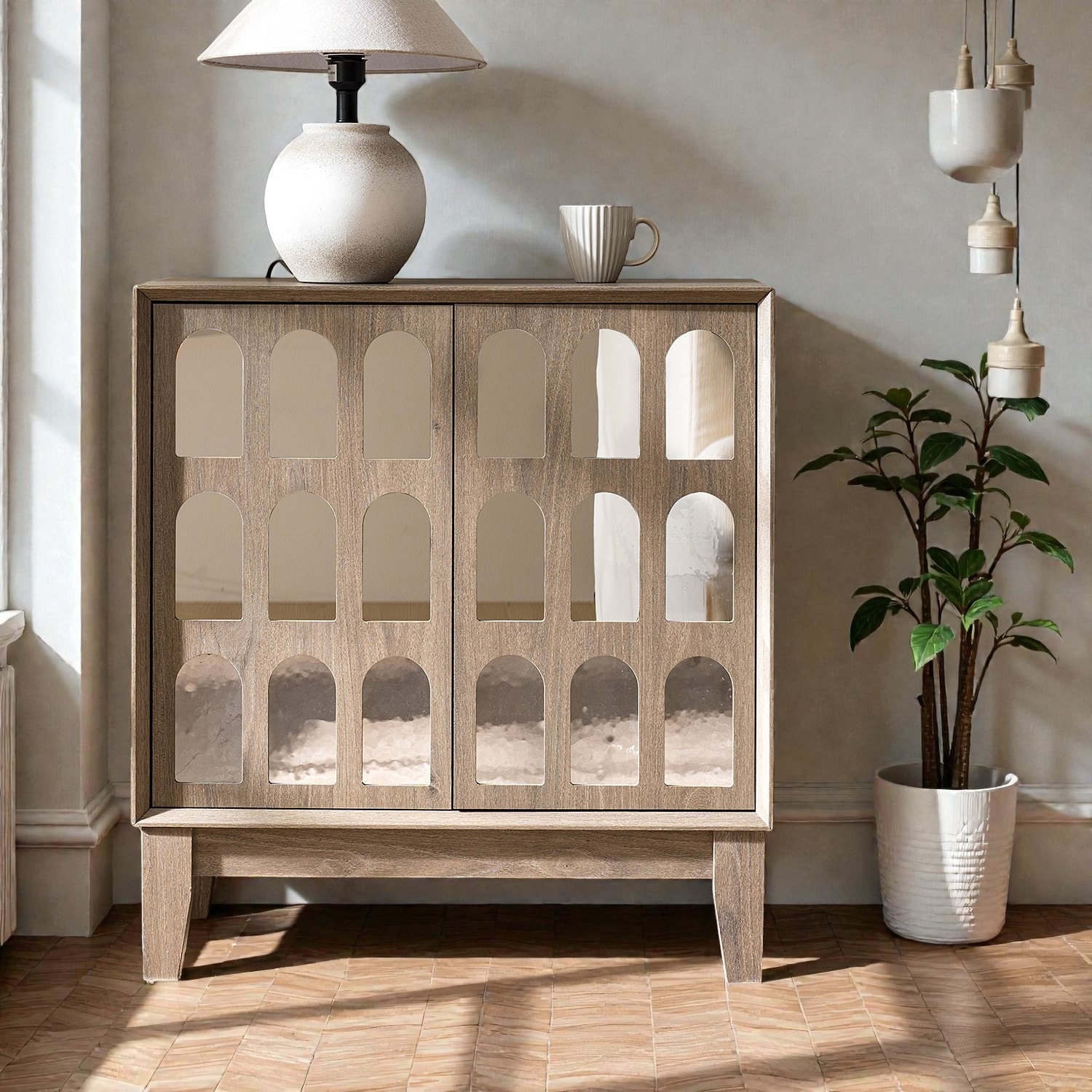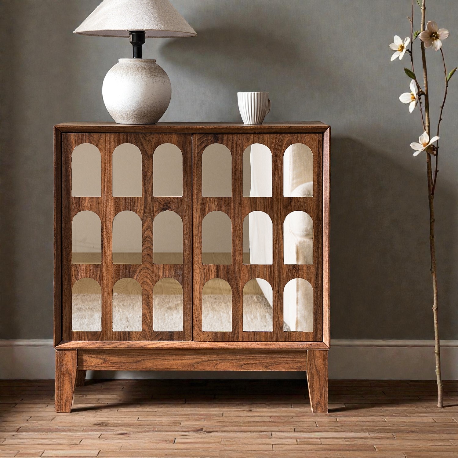 Mid-Century Modern Sideboard Buffet with Doors and Shelves, Boho Wooden Storage Cabinet for Living Room or Entryway