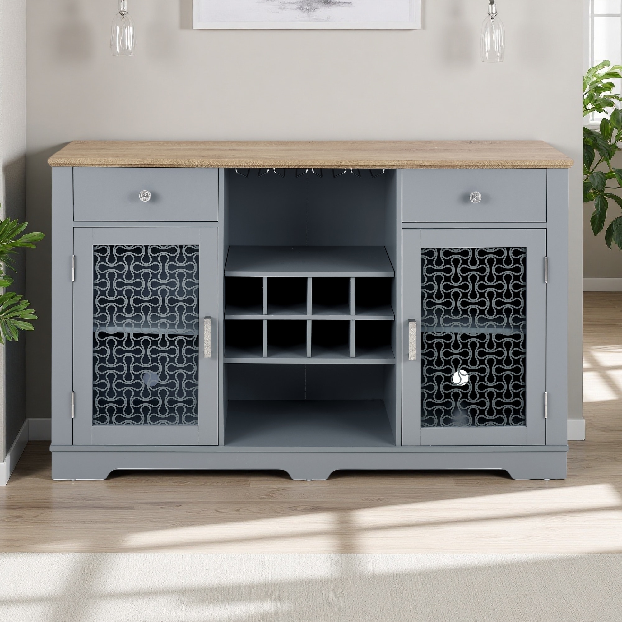 Modern Farmhouse Buffet Cabinet with Drawers, Wine & Glass Racks