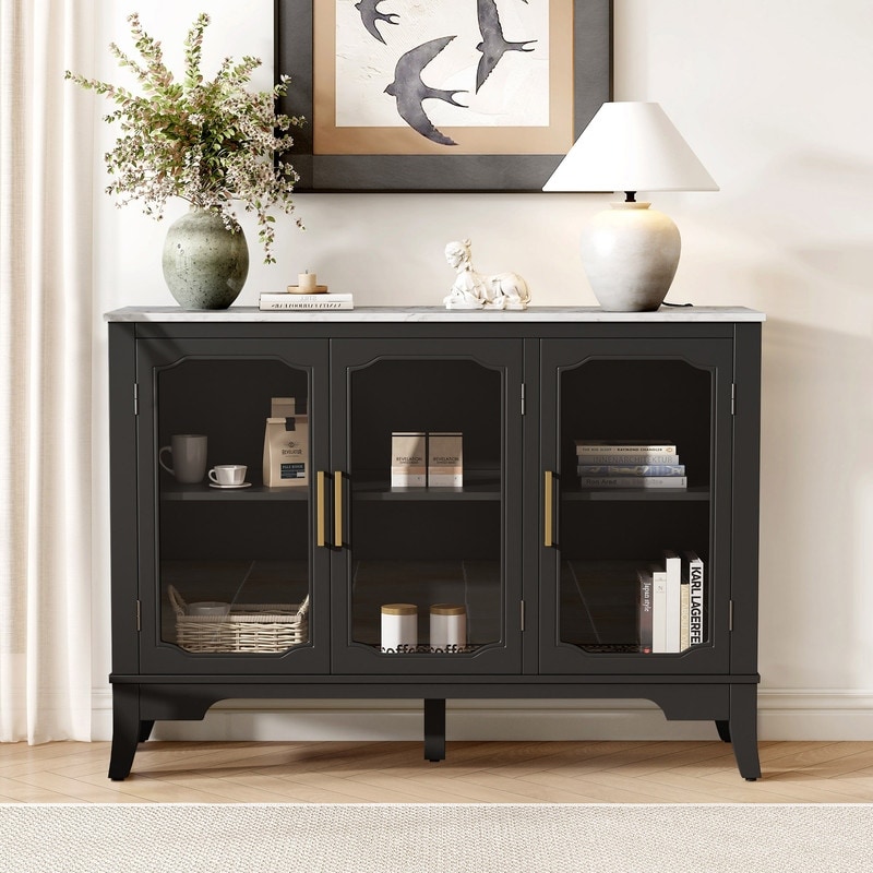 WAMPAT Modern Farmhouse Modular Buffet Cabinet, Glass Door Sideboard with Adjustable Shelves