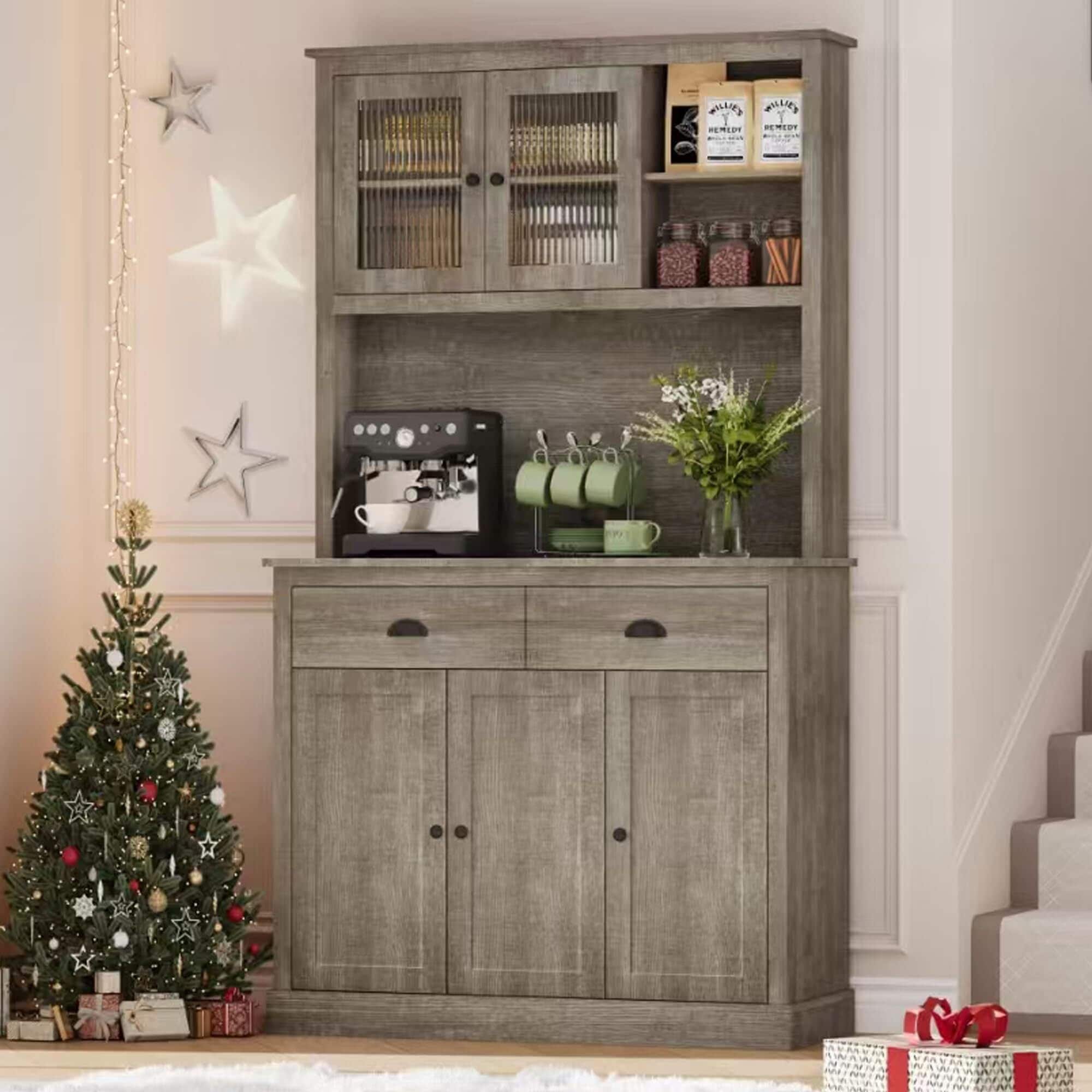 Tall Bar Cabinet, Adjustable Shelves & Drawers, TackView Modern Kitchen Pantry Hutch