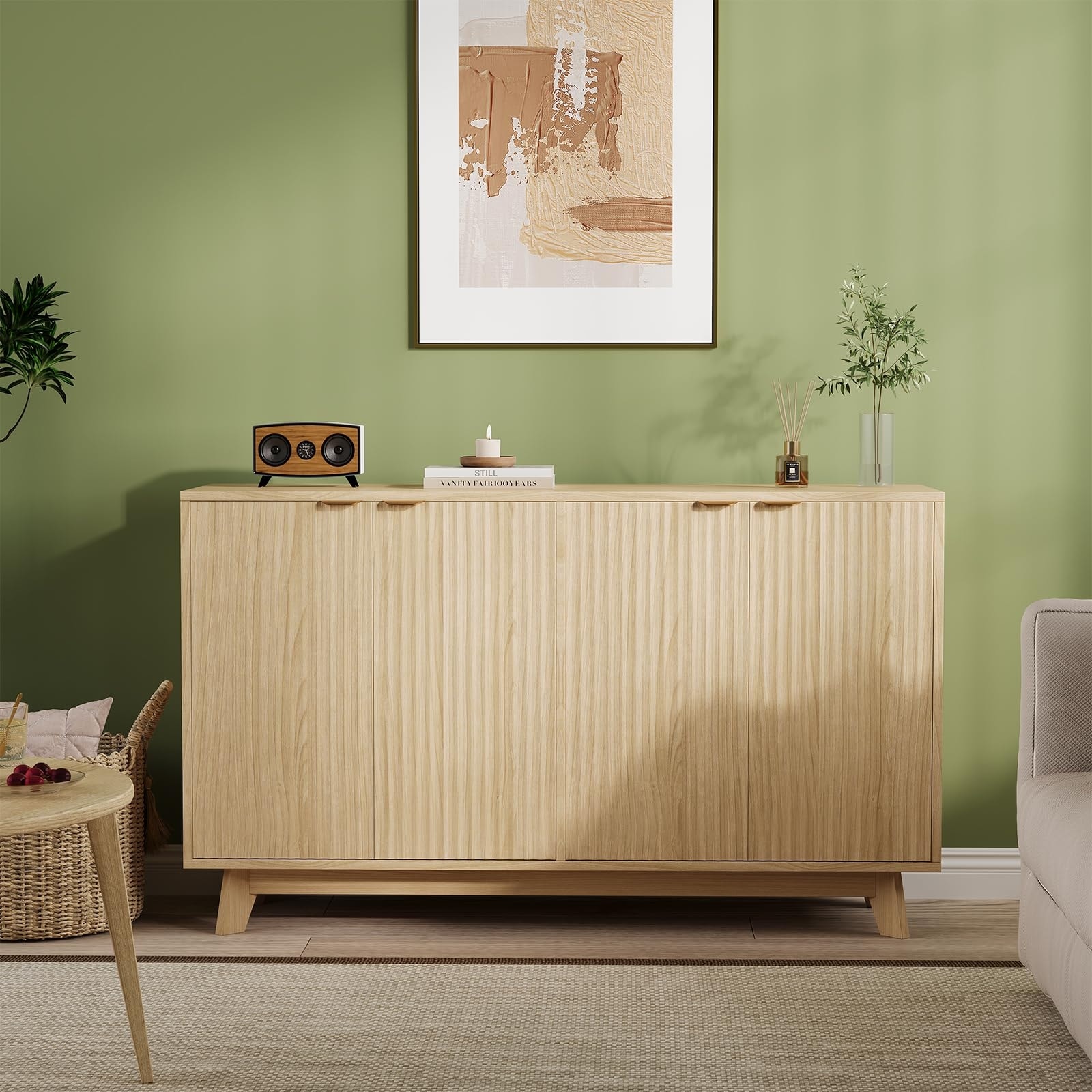 55" Fluted Sideboard Buffet Cabinet with Doors and Adjustable Shelves