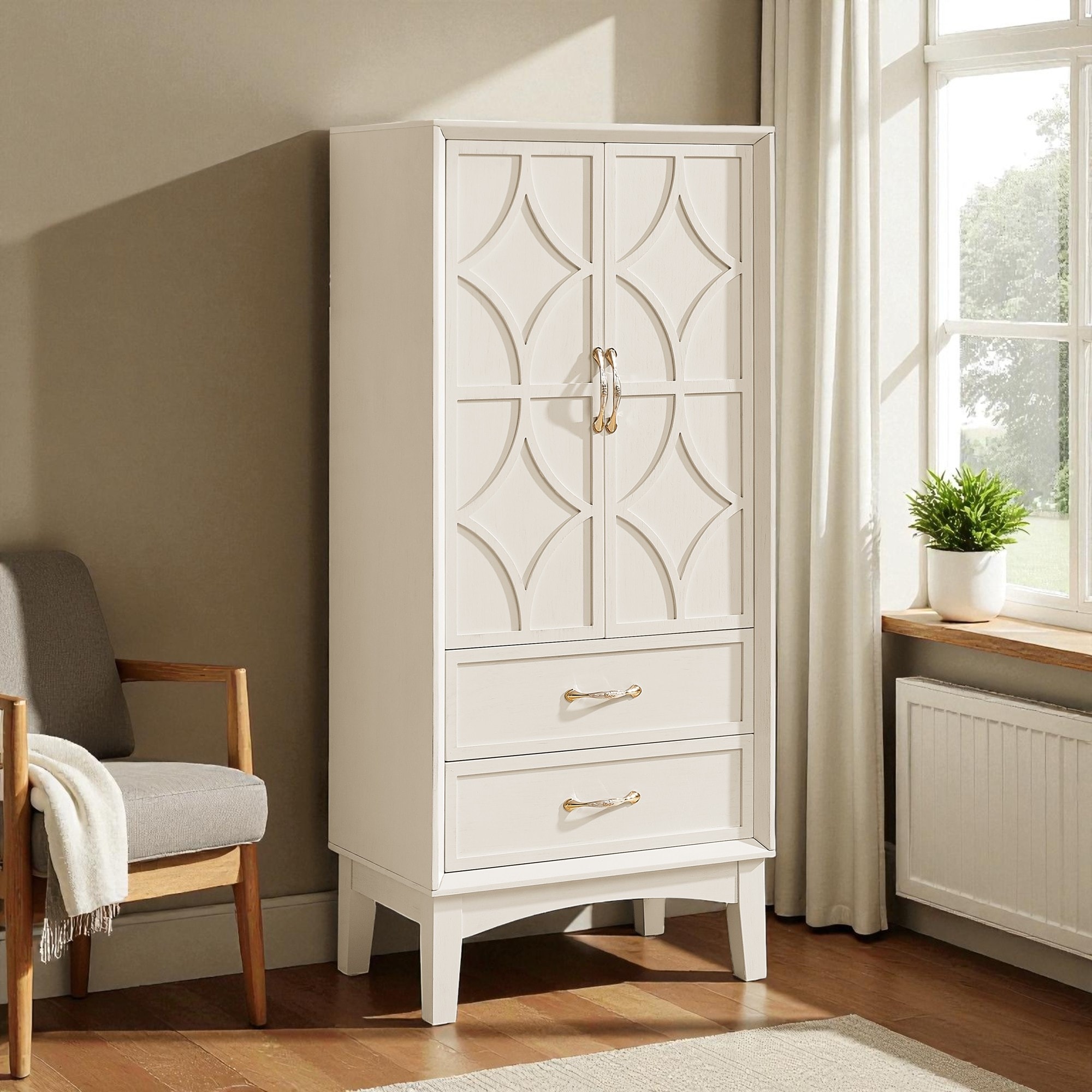 53.5" Tall Mid-Century Modern Storage Cabinet with Doors and Drawers, Retro Buffet Pantry Cabinet