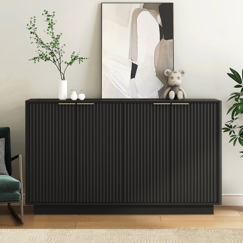 Wood 55.1" Fluted Buffet Cabinet, Credenza with Adjustable Shelves for Stylish Storage and Organization