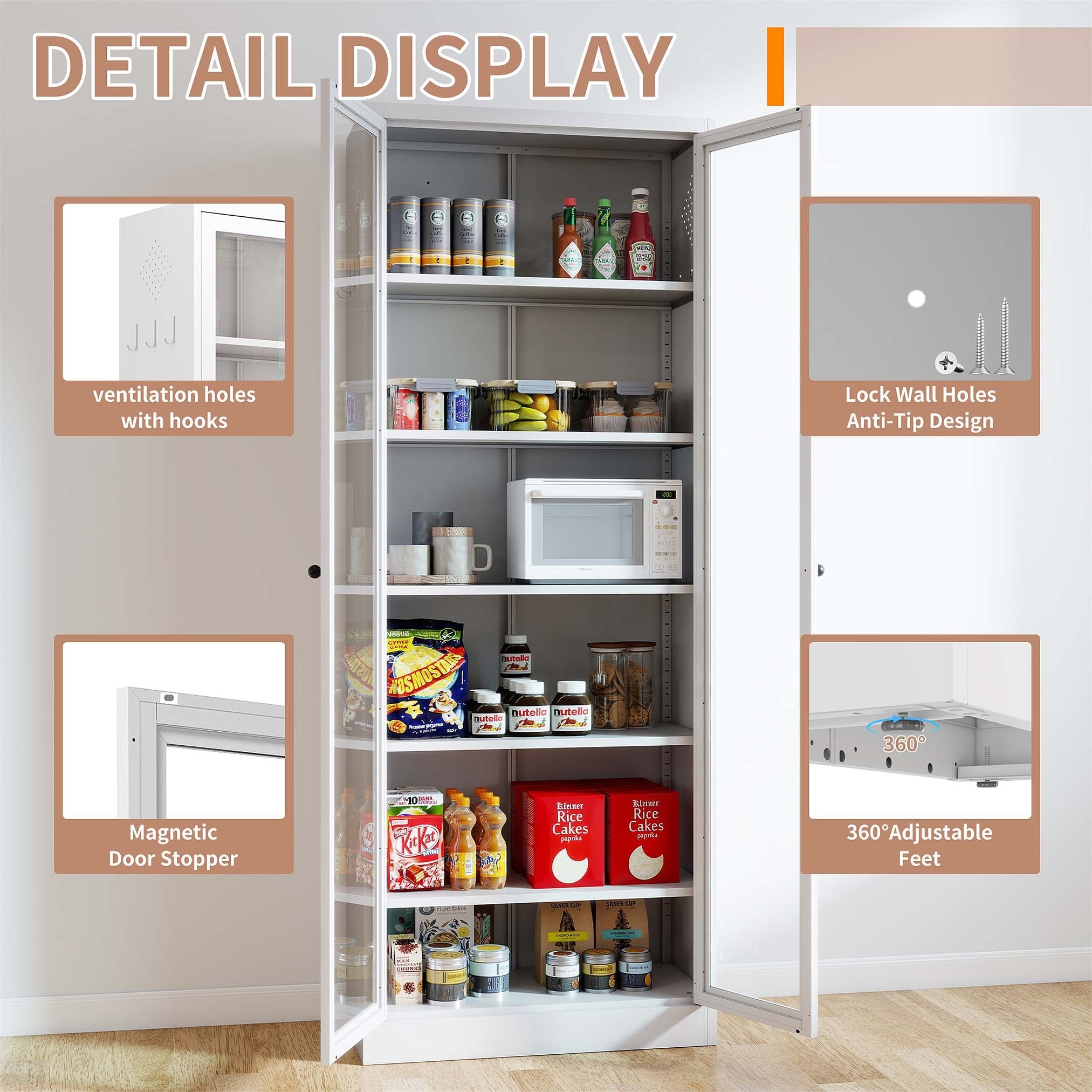 Metal Kitchen Pantry Cabinet with 4 Adjustable Shelves, 110lb Capacity, Heavy Duty Freestanding Organizer