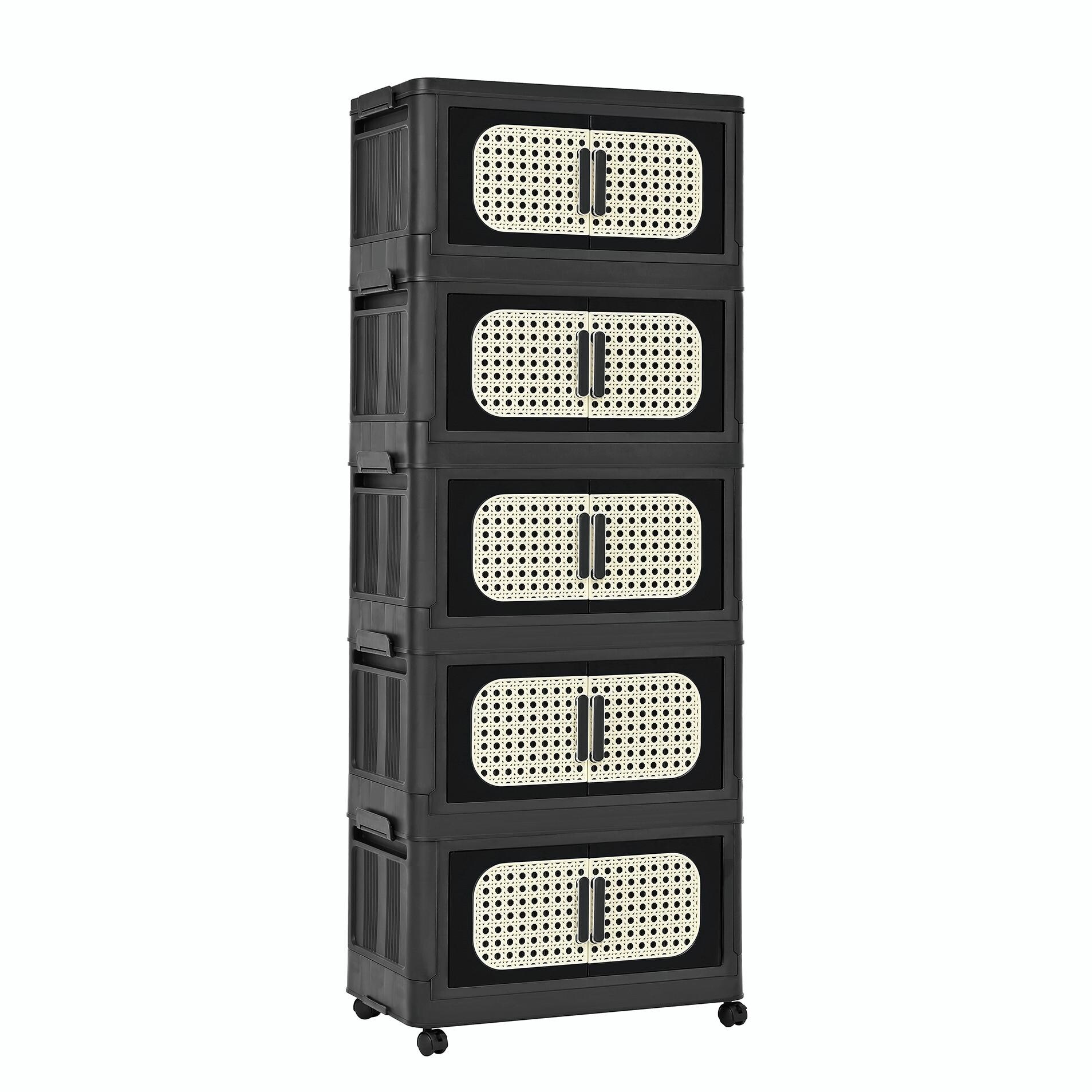 Retro Folding Storage Cabinet with 4 Tiers & Wheels, Brown/Black