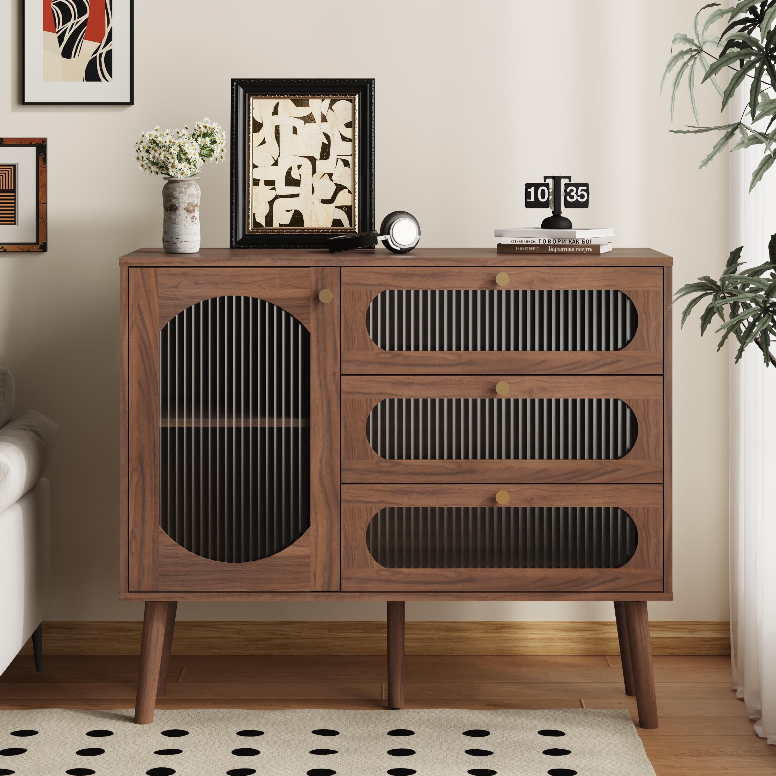 Wooden Accent Cabinet with 3 Drawers & 1 Door, Storage Sideboard, Entryway Cabinet, Dining Room Buffet