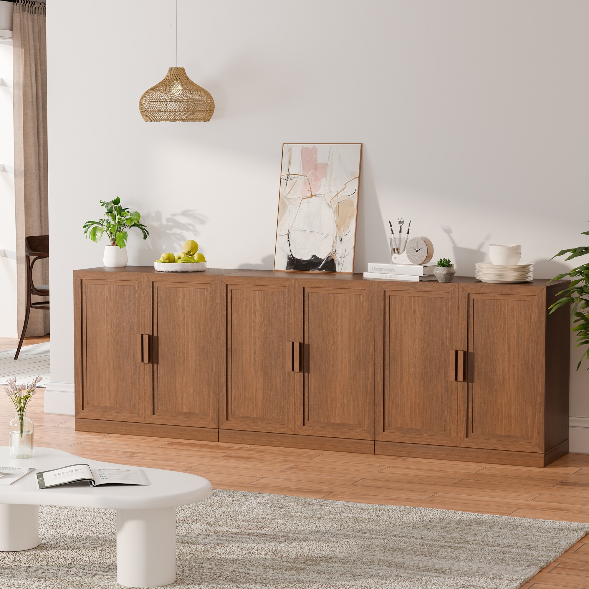 3-Set Wooden Door Sideboard Buffet Storage Cabinets with Adjustable Shelves - 93"Lx31"H