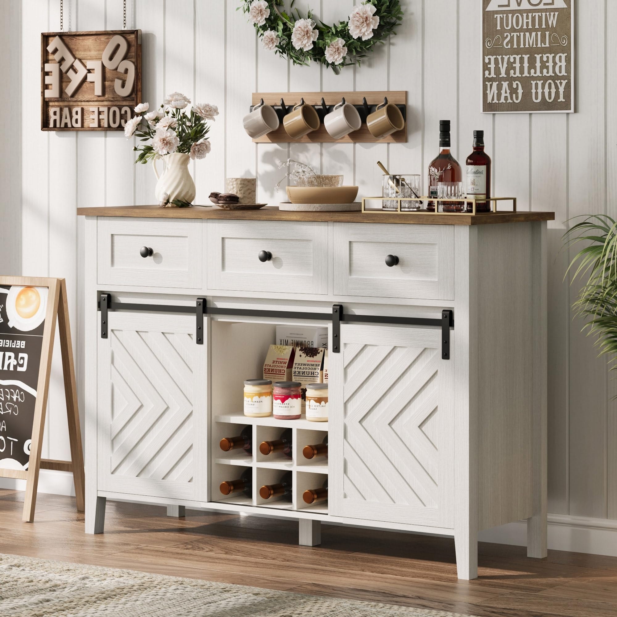 47.2" Sideboard Buffet Cabinet with Barn Door, 3 Drawers, Adjustable Shelf & Removable Wine Rack