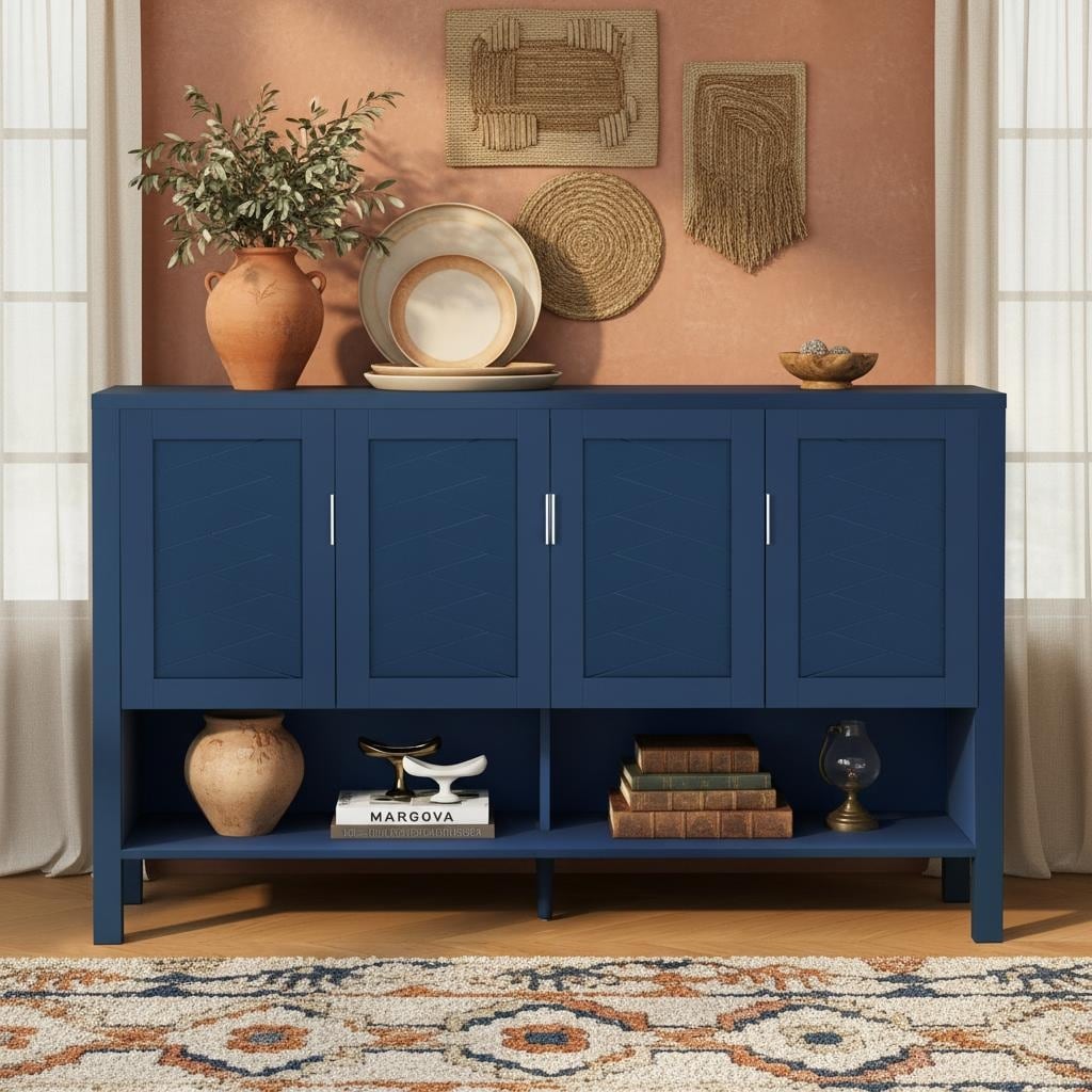 55.1''Storage Sideboard with 4-Doors,Multi Functional Buffet with Open Shelf and 2-Tiers Adjustable Shelves