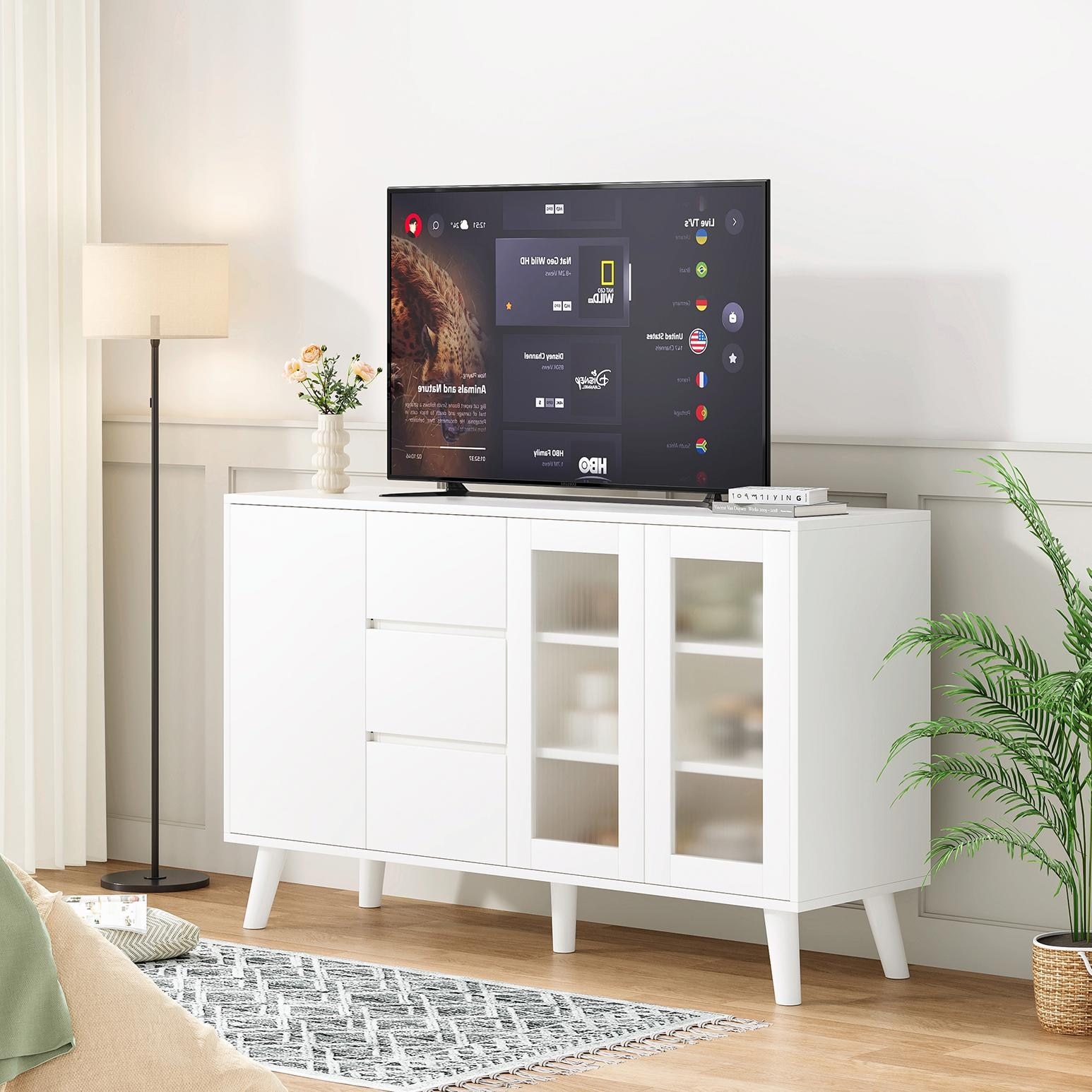 60" Farmhouse Credenza Storage Cabinet with Adjustable Shelves, TV Stand Buffets