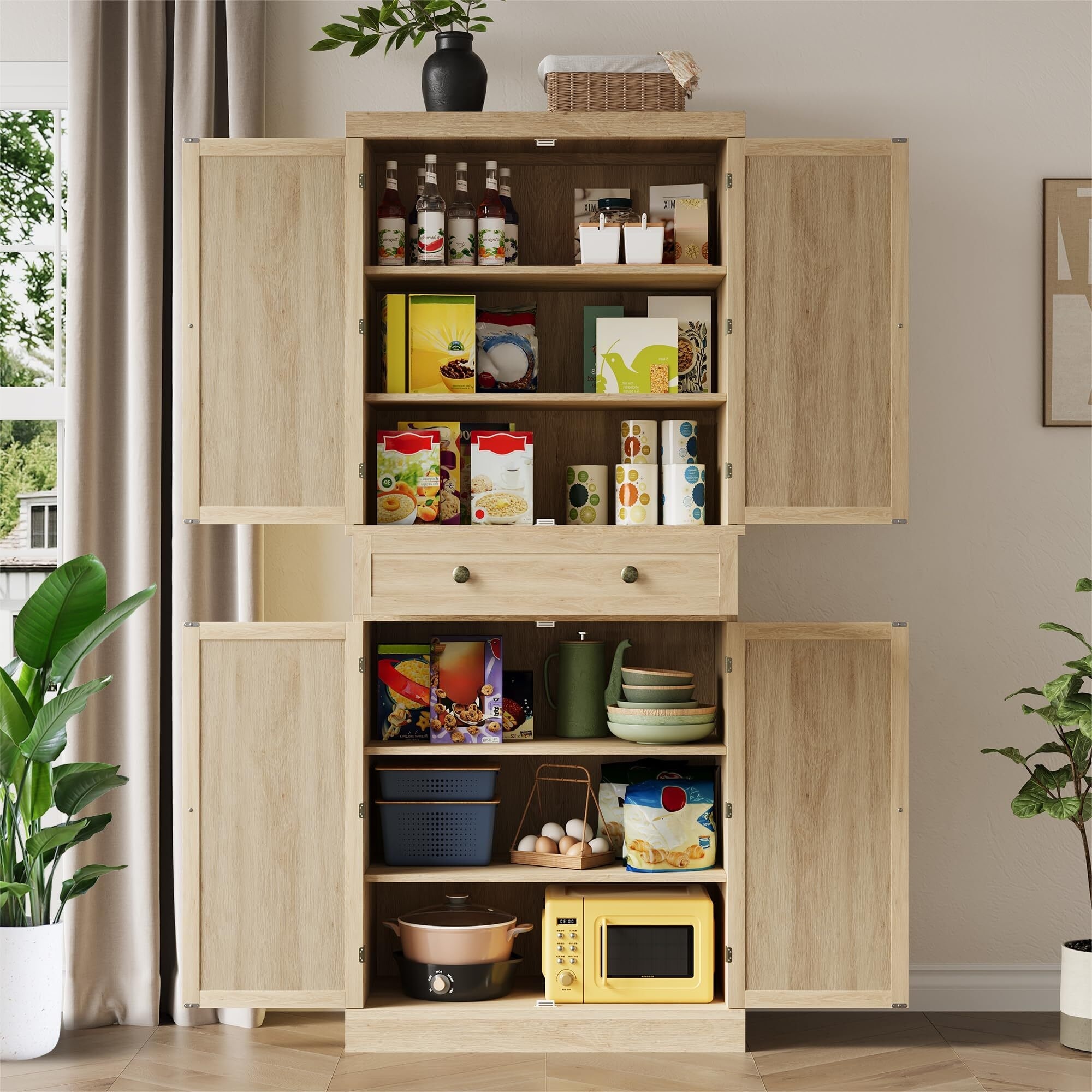 Spacious 78-Inch High Pantry Cabinet with Five Shelves and Durable Four-Legged Design for Maximum Storage and Organization