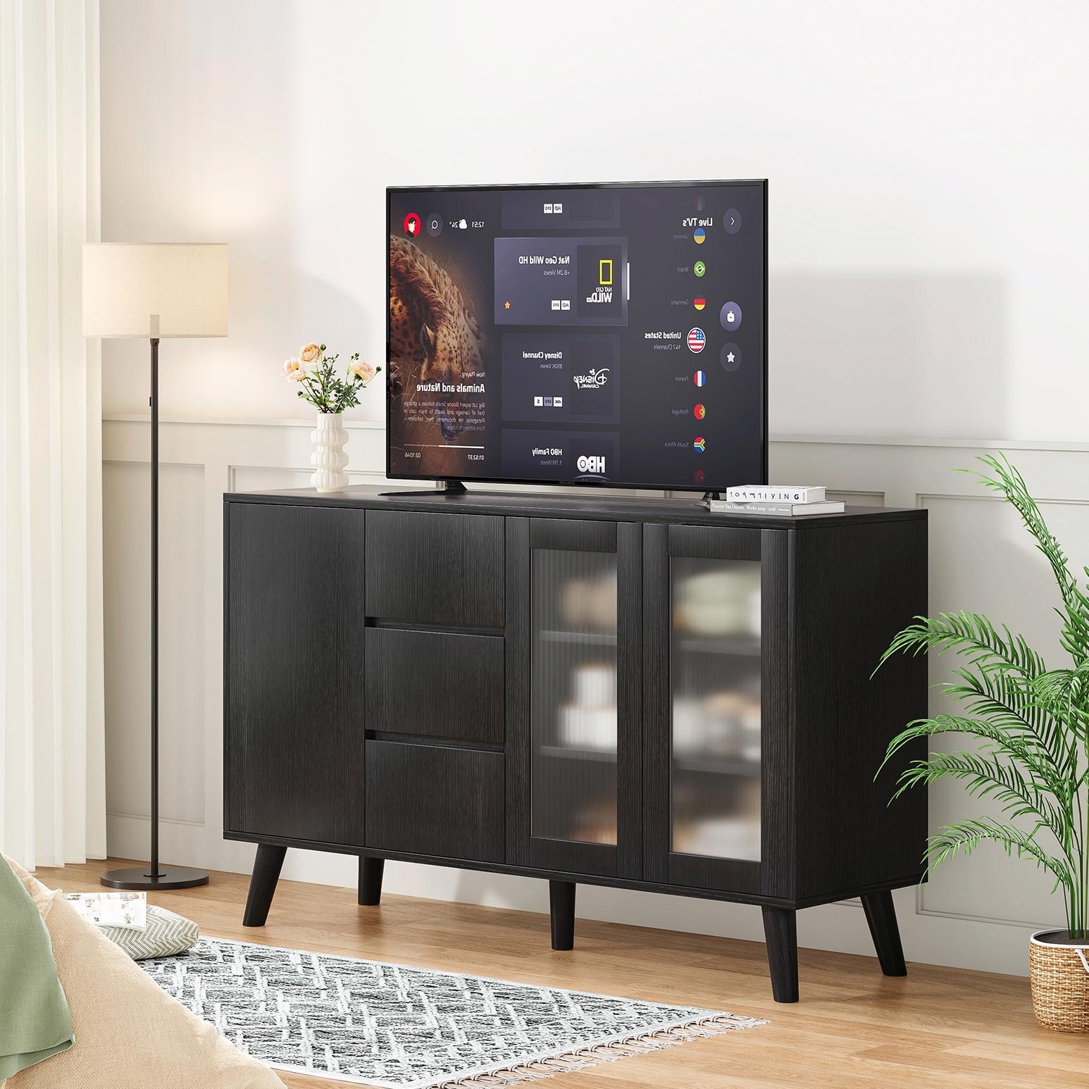 Living Room Entertainment Storage & Dining Room Cabinet, 59.92''W x 15.75''D x 29.53''H Buffet Sideboard With Solid Wood Doors.
