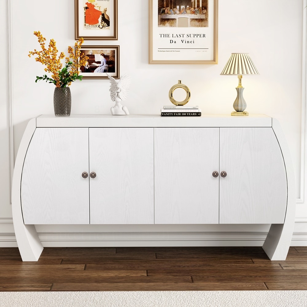 63-Inch Wave-Pattern Console Table with 4 Doors and Adjustable Shelf,Curved design Sofa Table Behind Couch