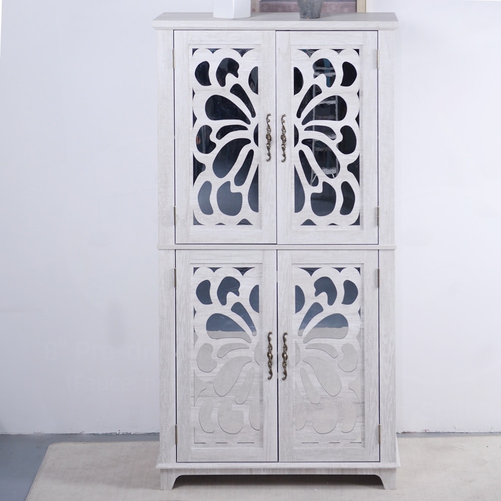 4 doors Mirrored Doors Accent Storage Cabinet for Corner