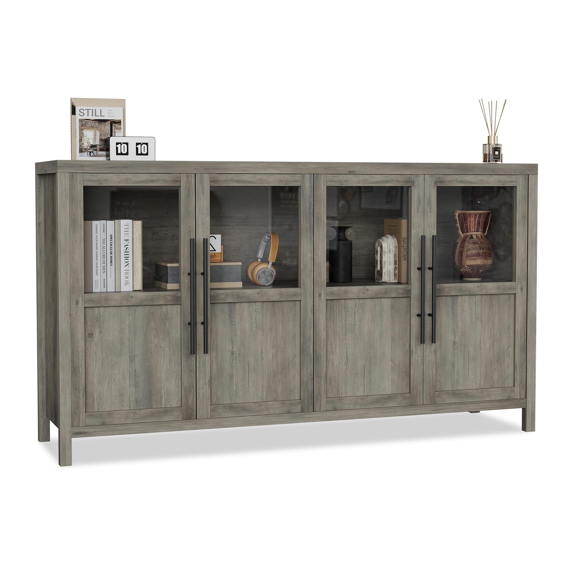 55" Sideboard Buffet Cabinet with 4 Glass Doors & Ample Storage for Dining Room & Kitchen