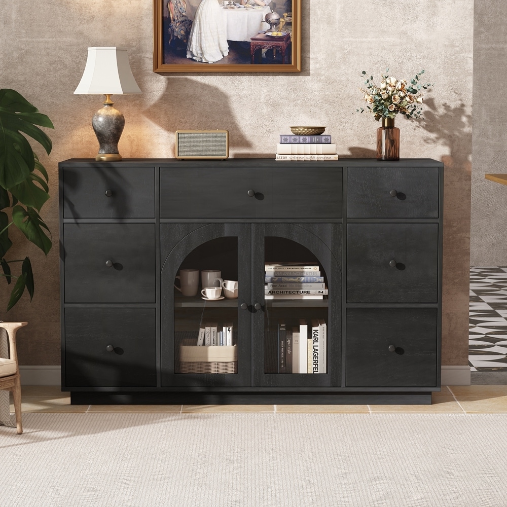 Sideboard Buffet Cabinet with Storage, Console Accent Cabinet with 4 Carved Arched-Groove Doors