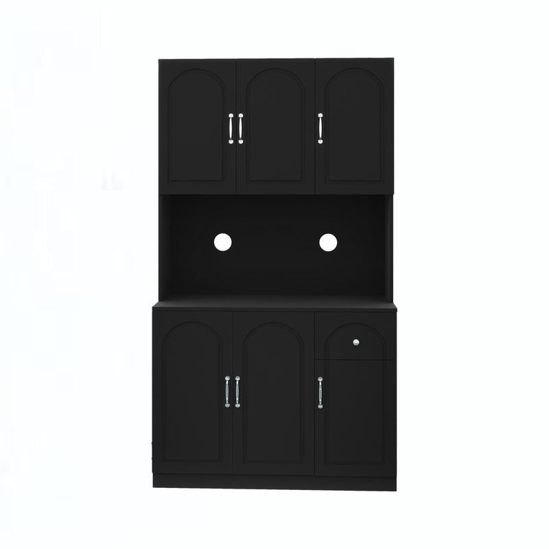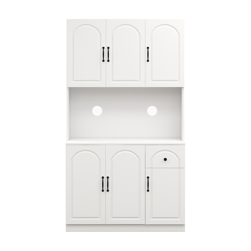 71-Inch Freestanding Kitchen Pantry Cabinet with Microwave Oven Countertop, Adjustable Shelves, 6 Doors, and 1 Drawer.