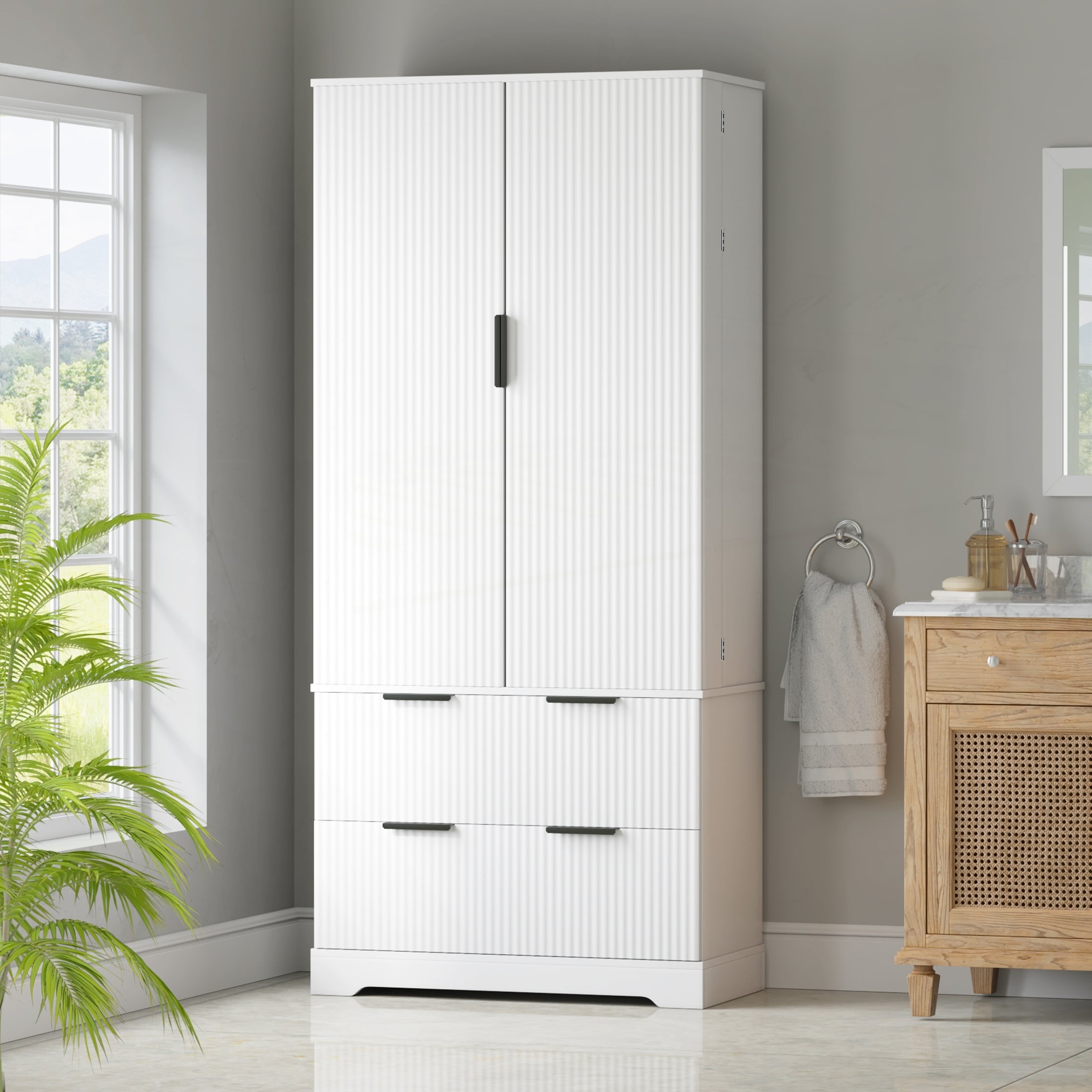 Modern Fluted Kitchen Pantry Cabinet