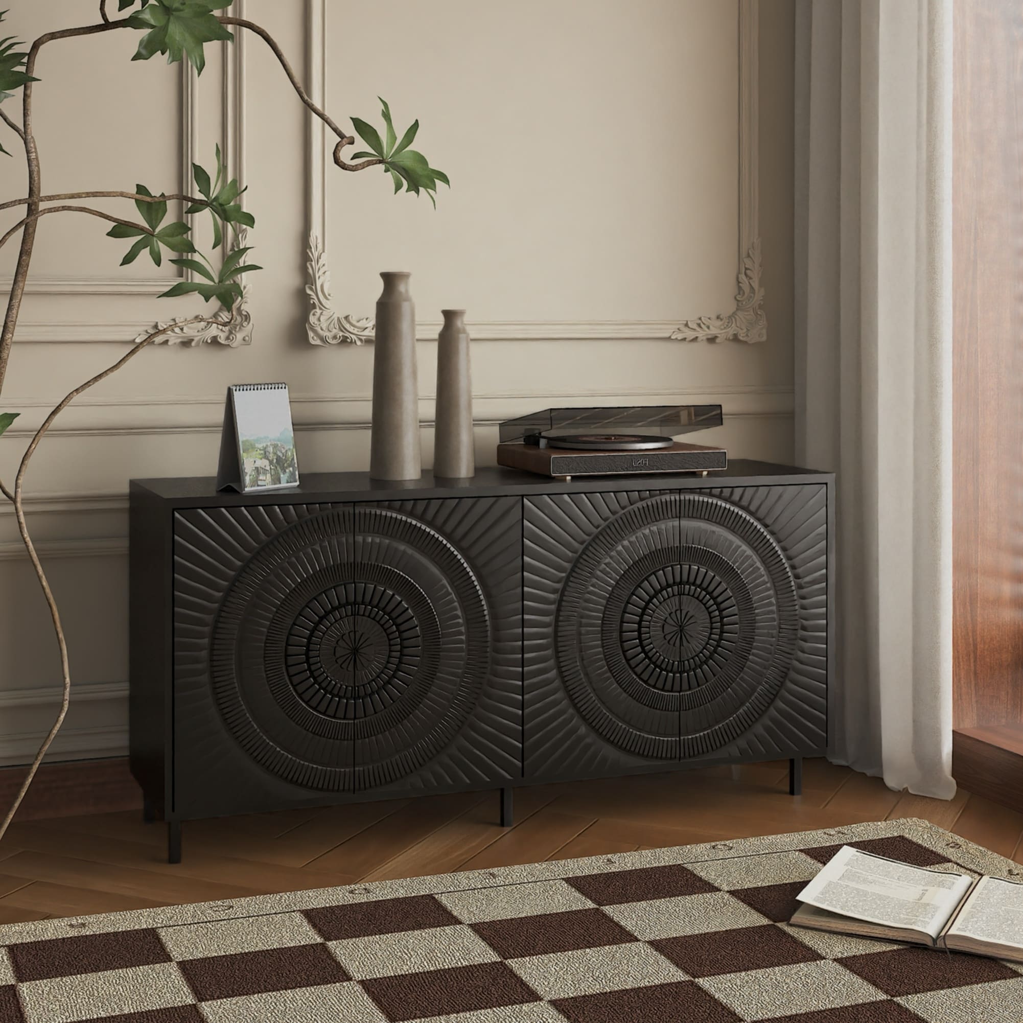 Farmhouse Minimalist 4-Door Sideboard with Concealed Handles, for Living Room, Dining Room and Hallway