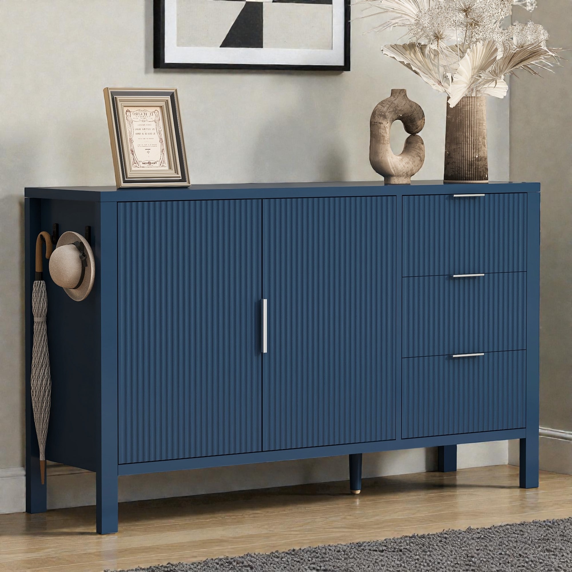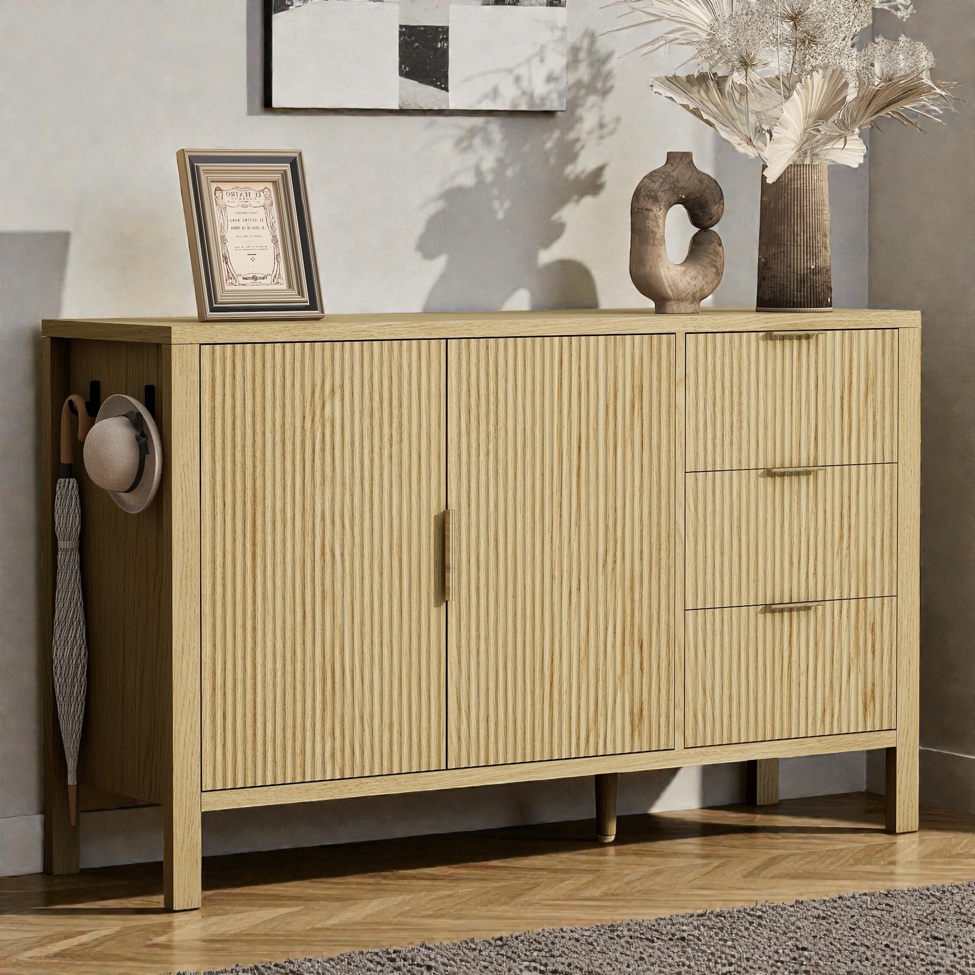 Wave Pattern Sideboard Buffet Cabinet with 3 Drawers, 2 Doors, Storage Cabinet, Entryway Cabinet, Coffee Cabinet for Dining