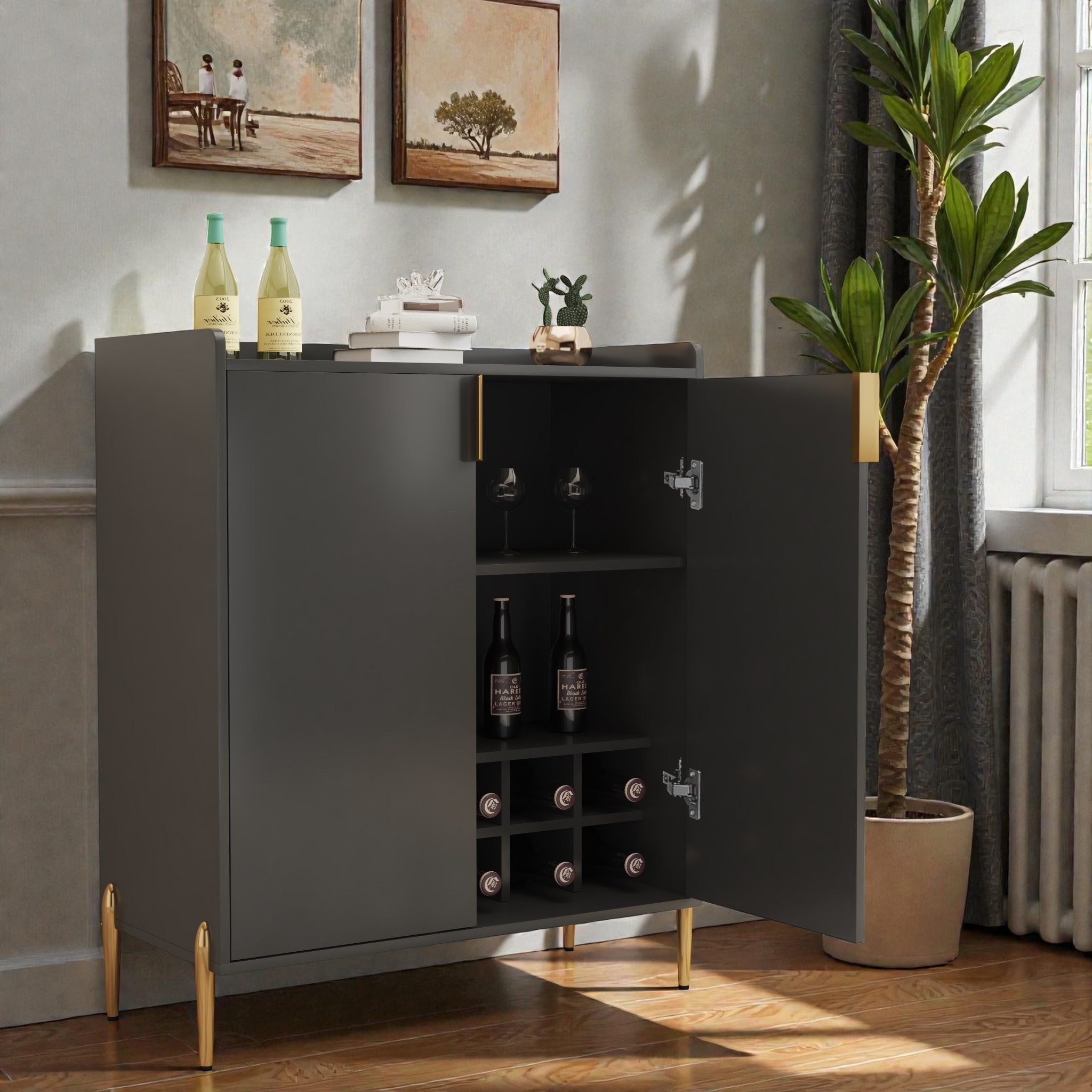 Wine Bar Cabinet with 12-Bottle Rack, Adjustable Storage Shelf, Entryway Cabinet and Control Cabinet, Sideboard Buffet Cabinet