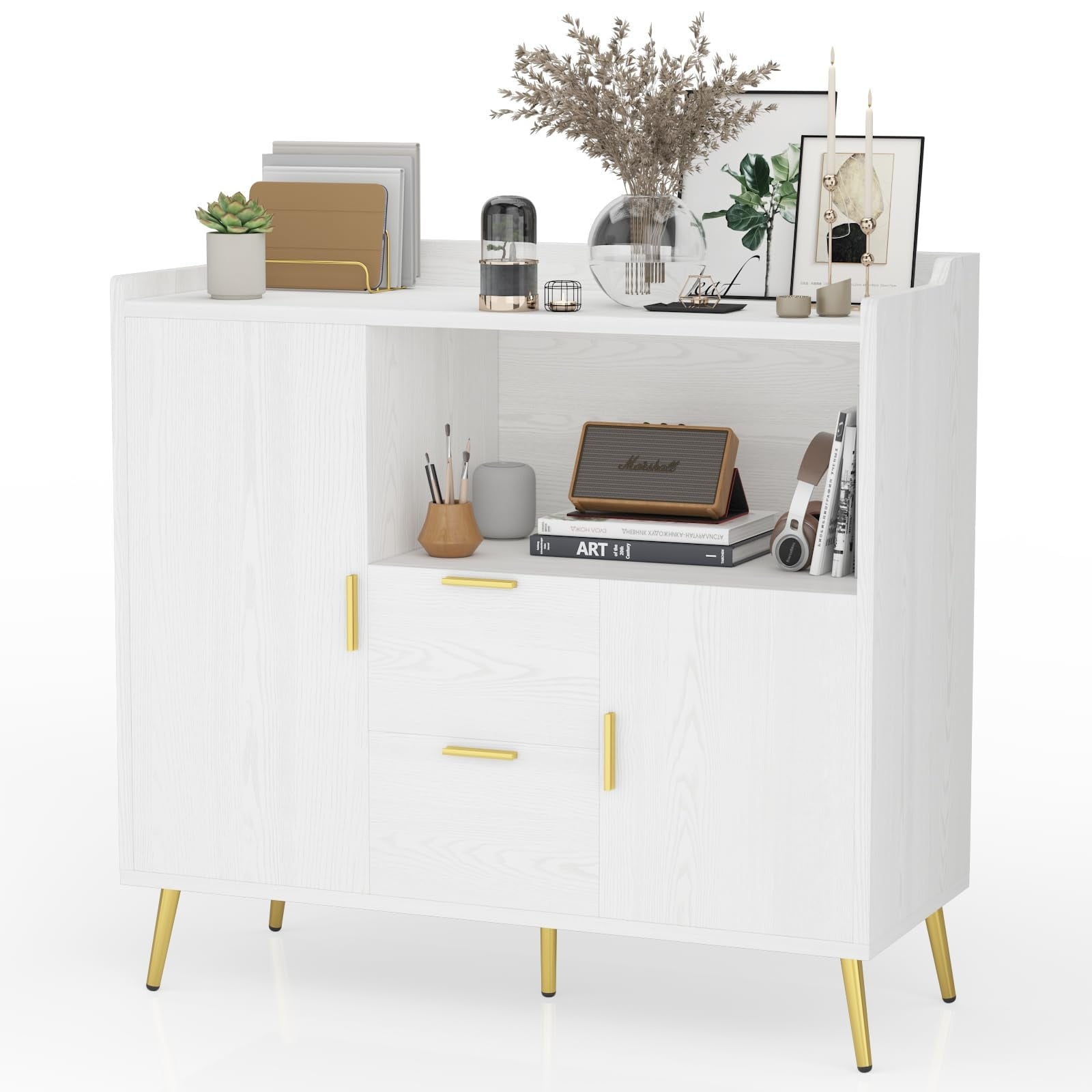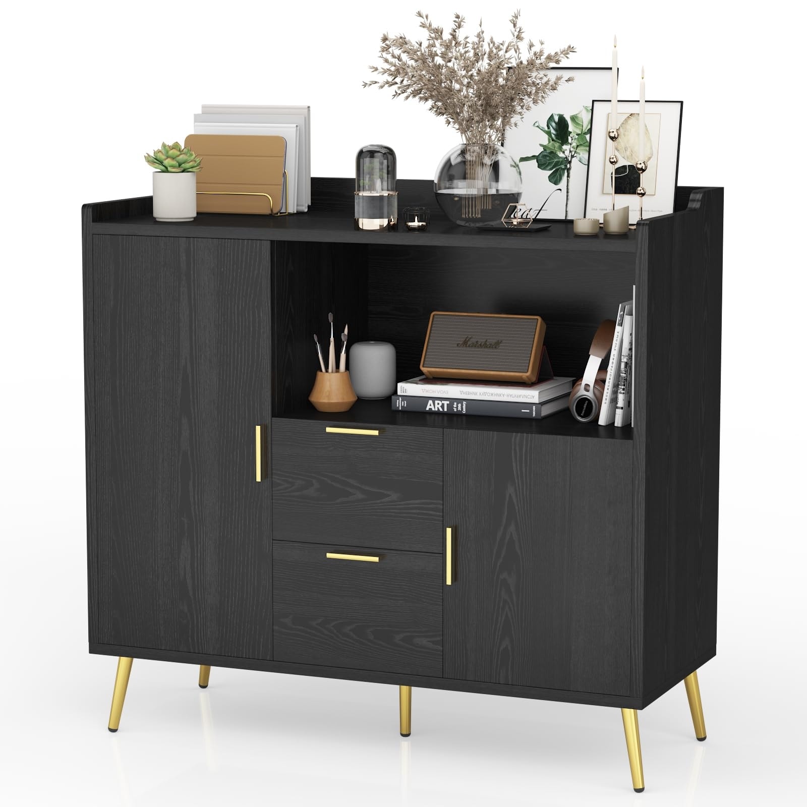 Modern Sideboard Buffet Cabinet Coffee Bar Cabinet Cupboard Console Table with Gold Metal Legs for Dining Room Entryway