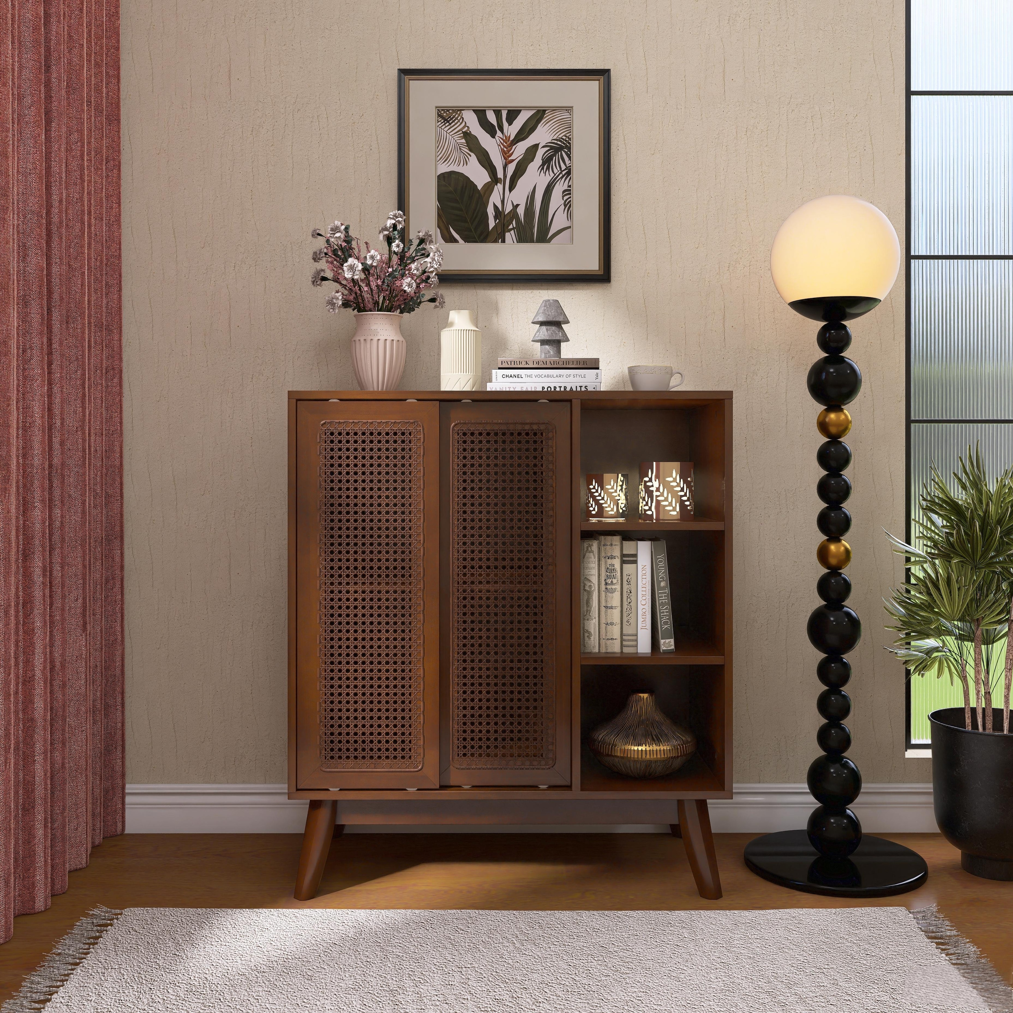 ARTCHIRLY 32 Inch Mid Century Modern Rattan Sideboard Cabinet, Buffet Cabinet for with Adjustable Shelf & Solid Wood Feet