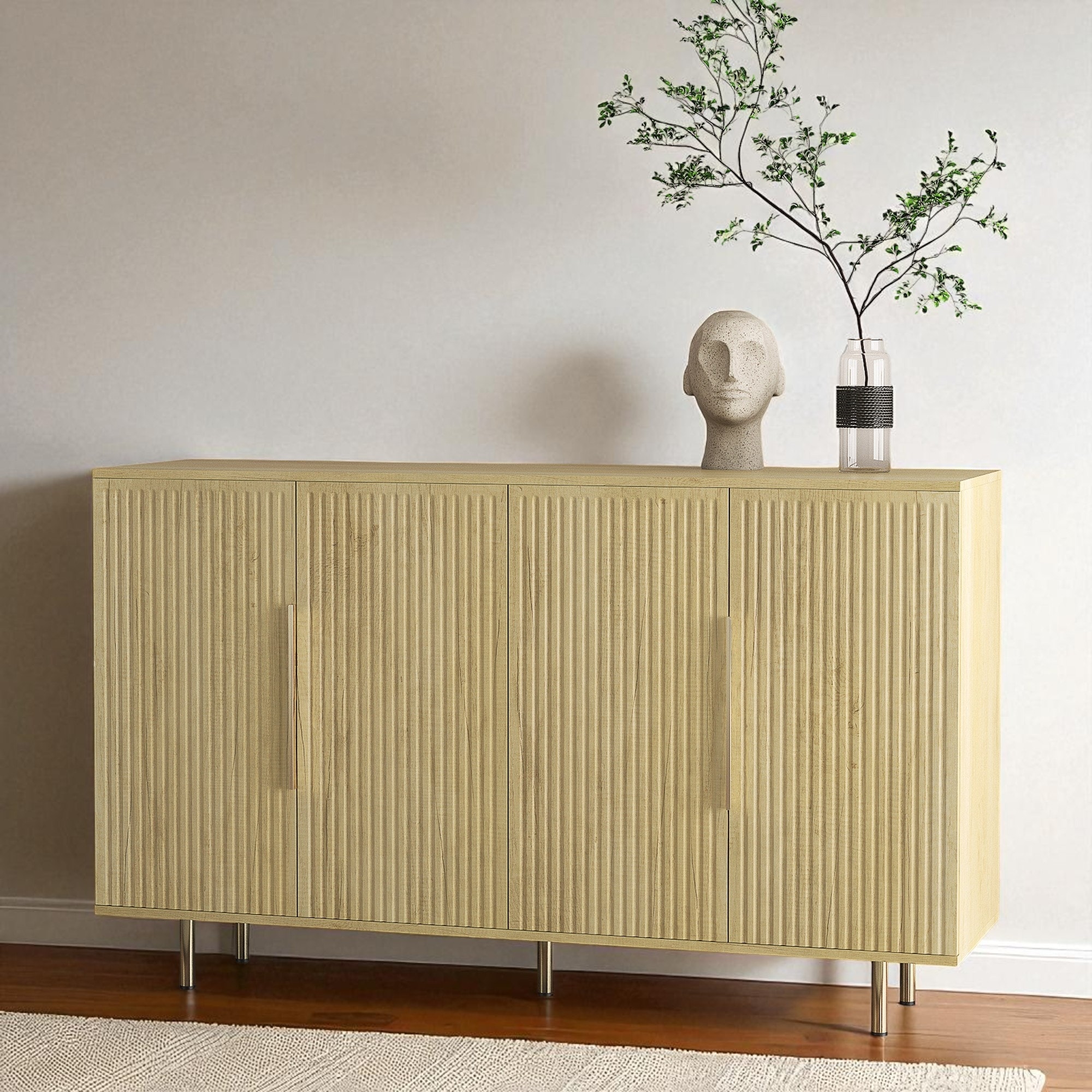 Modern Wood Buffet Cabinet, Fluted Sideboard, Adjustable Shelves (Credenza/Console)