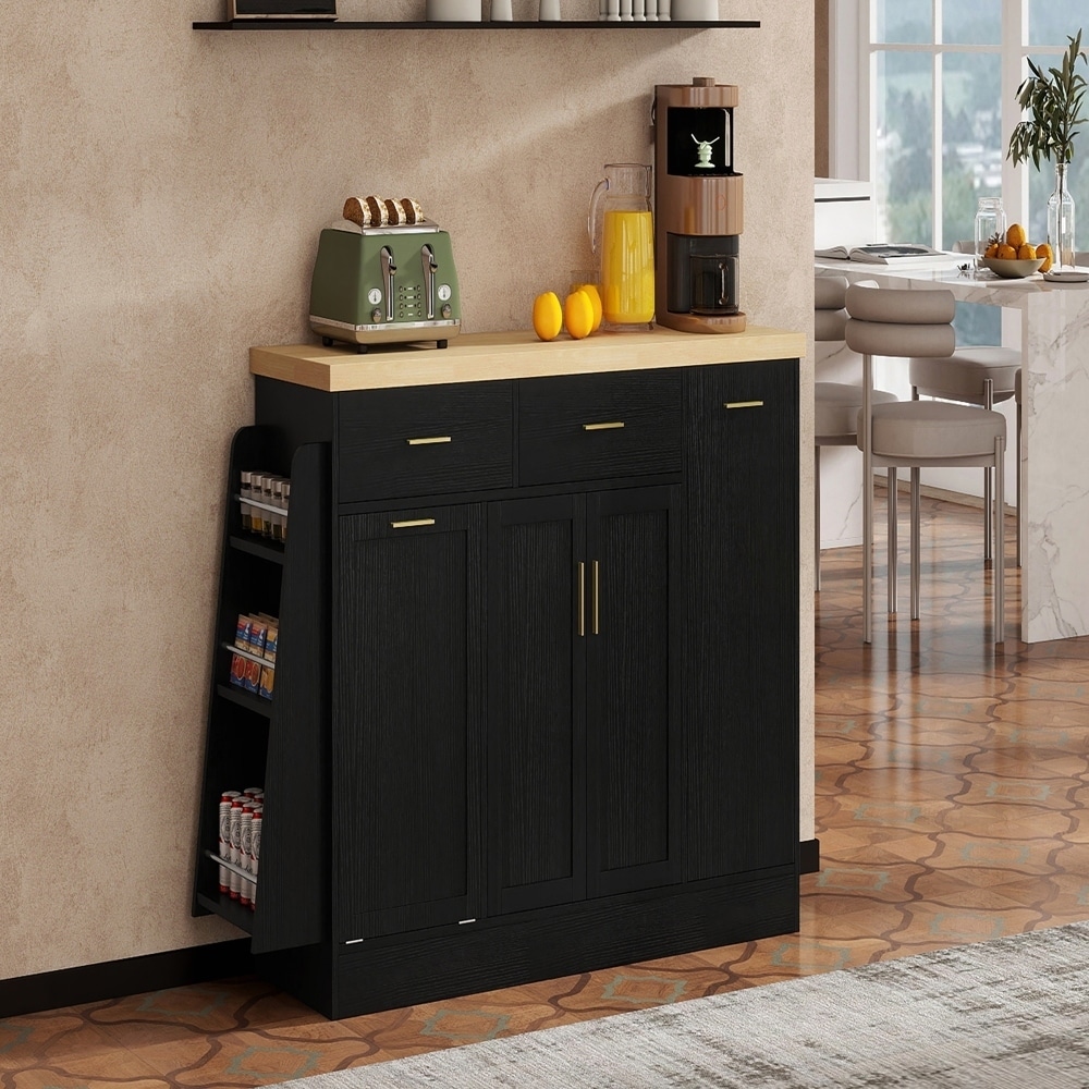 Multi-Functional Storage Sideboard with Sliding Door Cabinet and 3-Tier Spice Rack