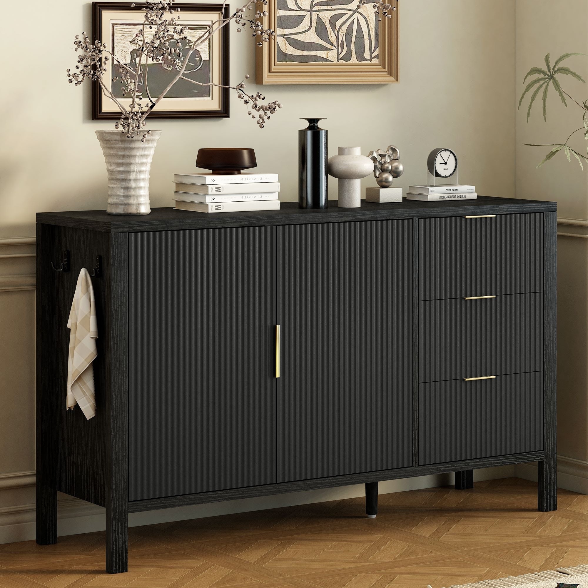 55" Wave-Pattern Sideboard with Doors & Drawers for Dining Room, Living Room and Entryway