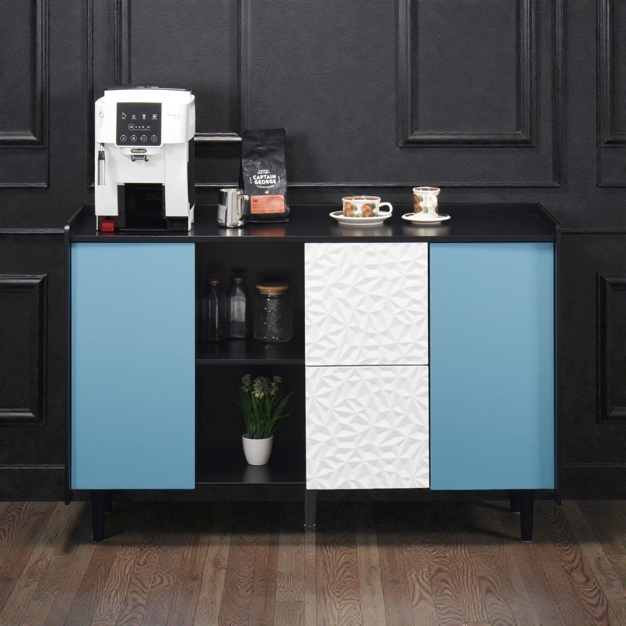 Sideboard Buffet Cabinet with Drawers and Open Shelves, Storage Credenza Coffee Bar Cabinet for Kitchen Dining Living Room