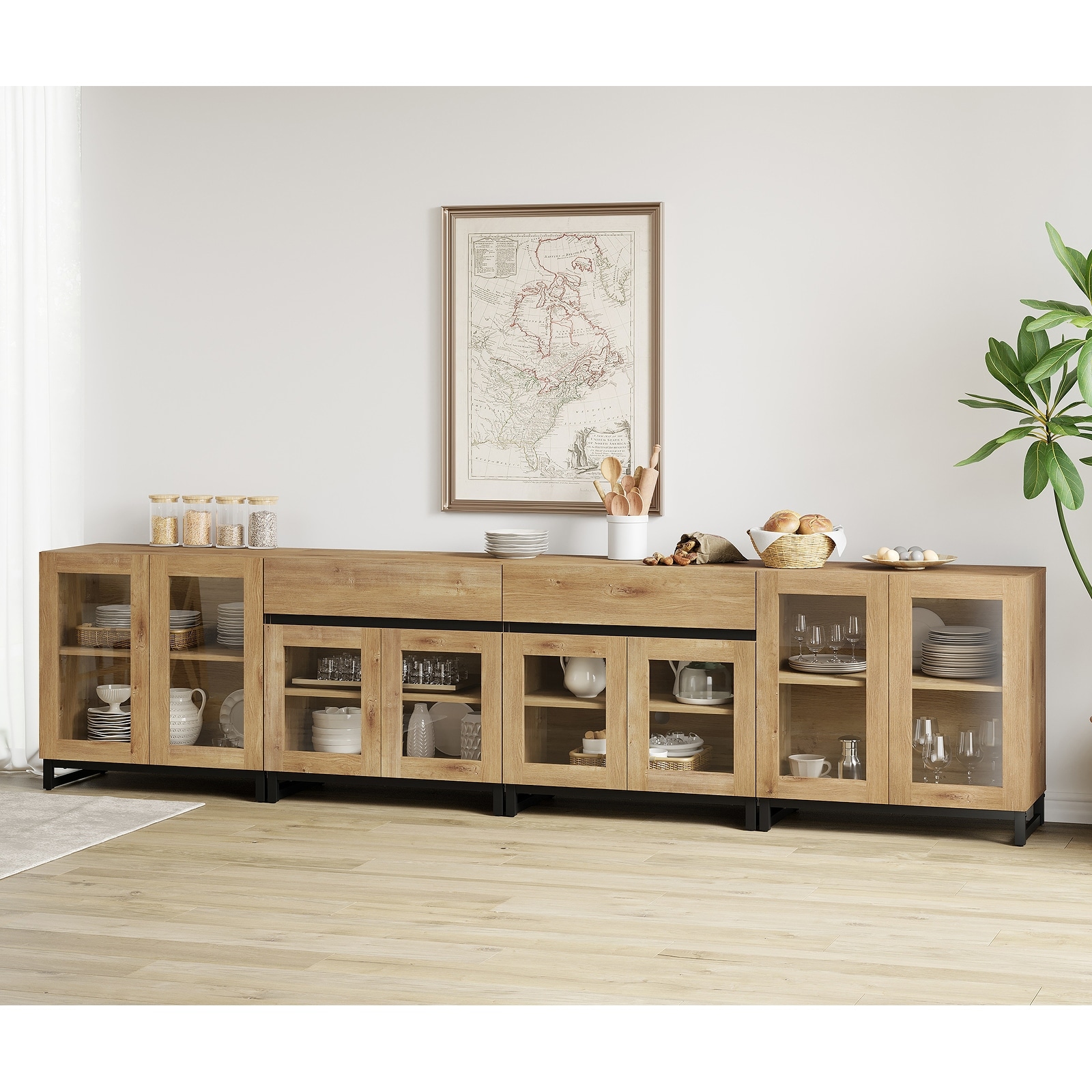 4 in 1 Sideboard with 2 Glass Doors & Drawers, Adjustable Shelf, Metal Base for Living Room, Kitchen