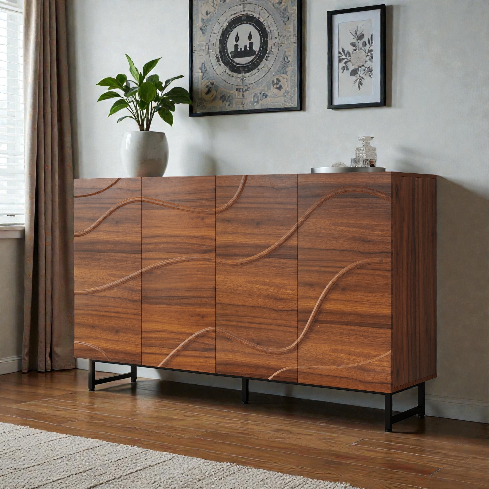 Wave Relief Sideboard Buffet Cabinet, Adjustable Shelves, Large Storage Cabinet Decorative Entryway Coffee Cabinet
