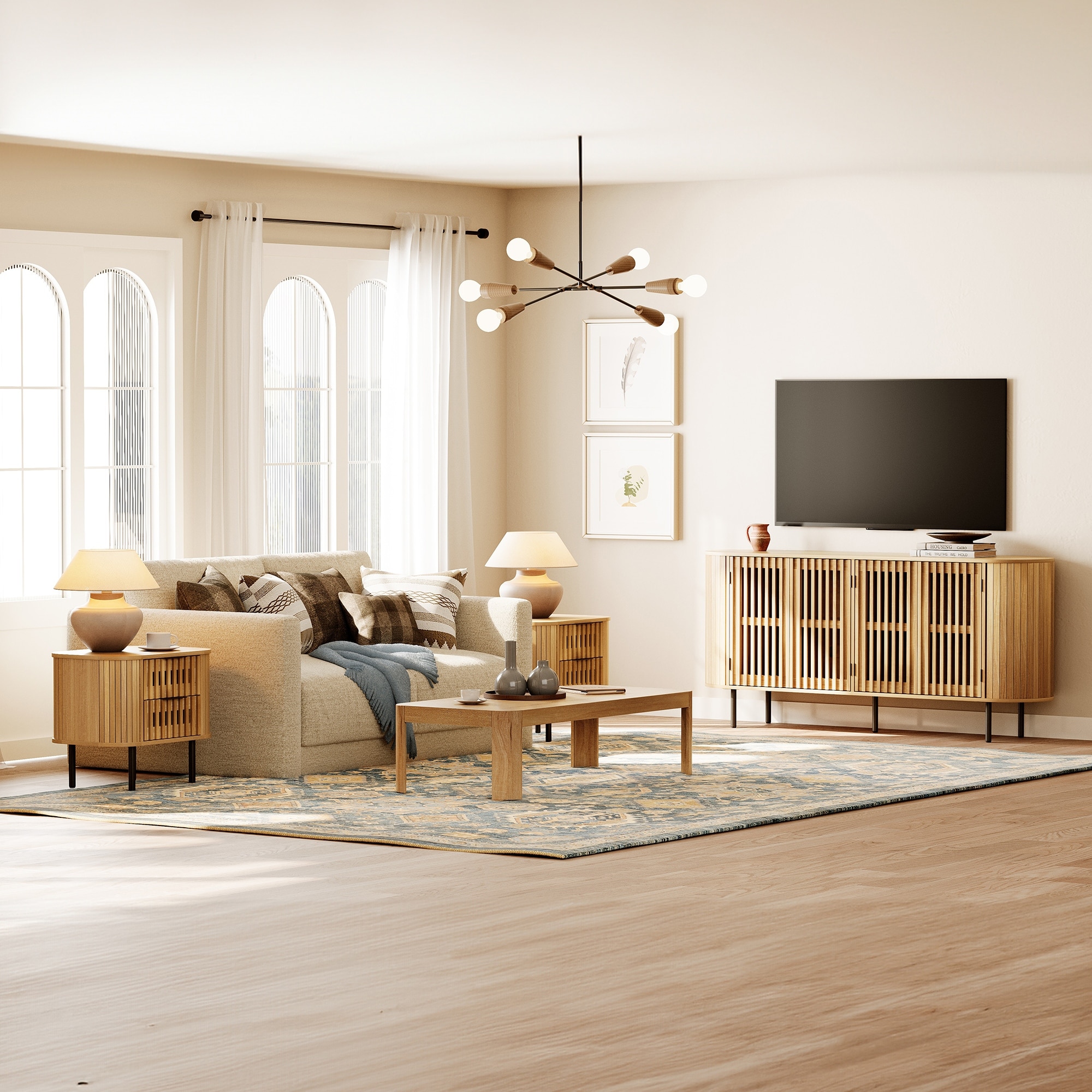 WAMPAT 3 Piece Fluted Buffet Cabinet and Nightstand