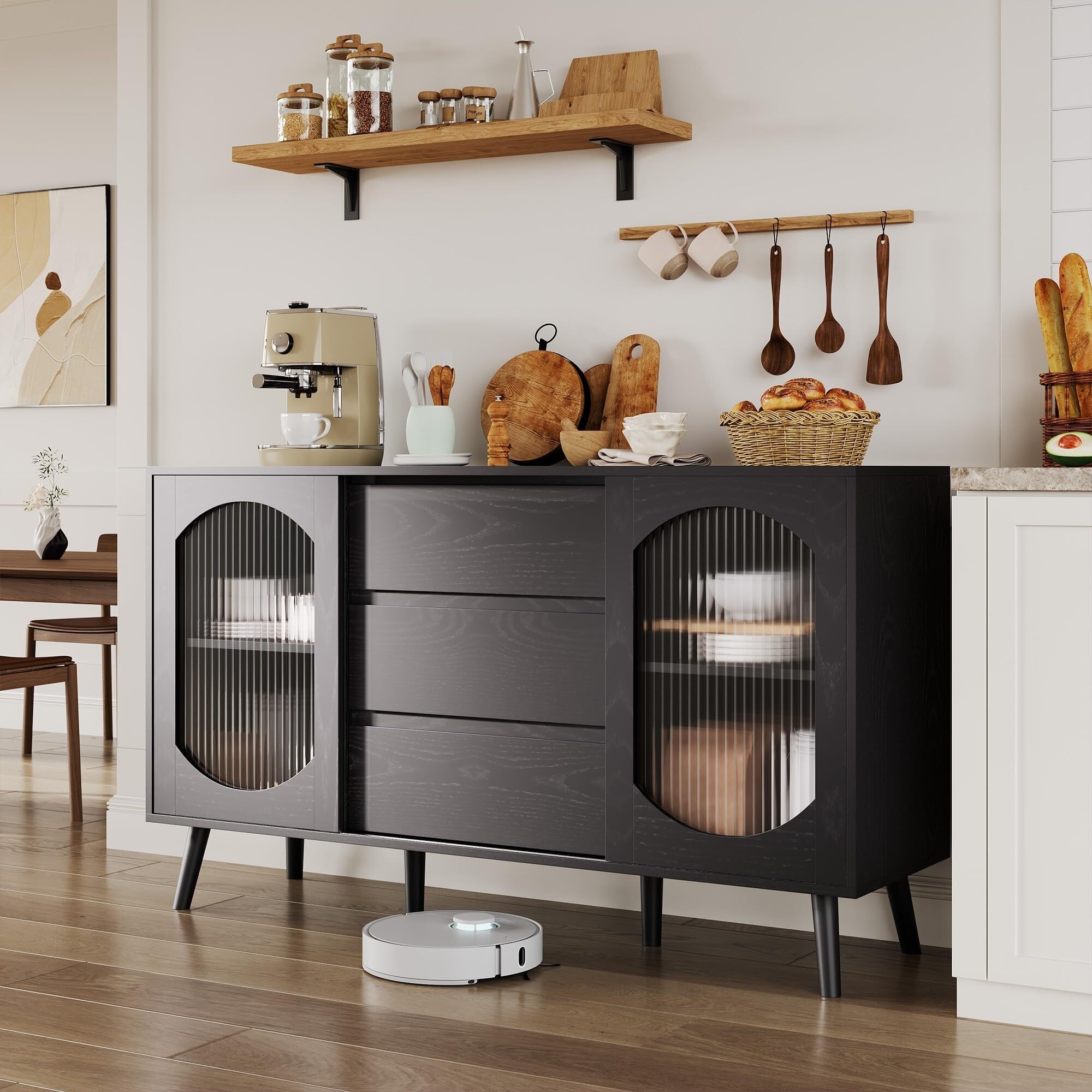 Buffet Cabinet with Storage, Sideboard Cabinet with Fluted Glass Sliding Doors and Drawers