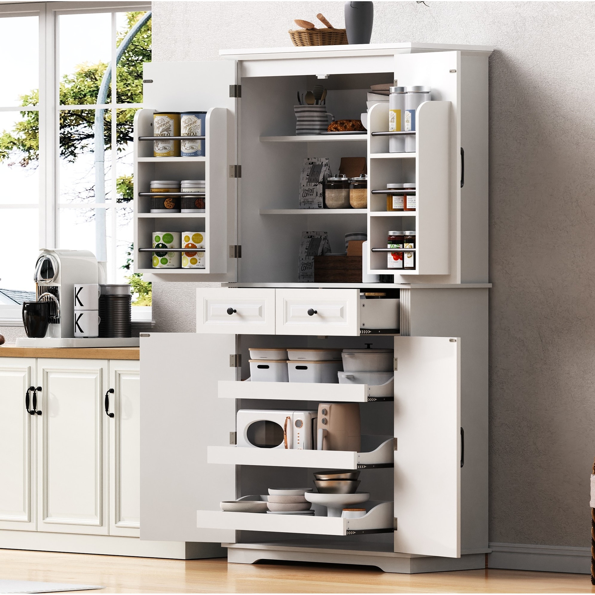 71"Tall Kitchen Pantry Cabinet with 3 Pull Out Cabinet Organizers,Cabinet with 6 Door Shelves,2 Drawers,Freestanding Cupboard