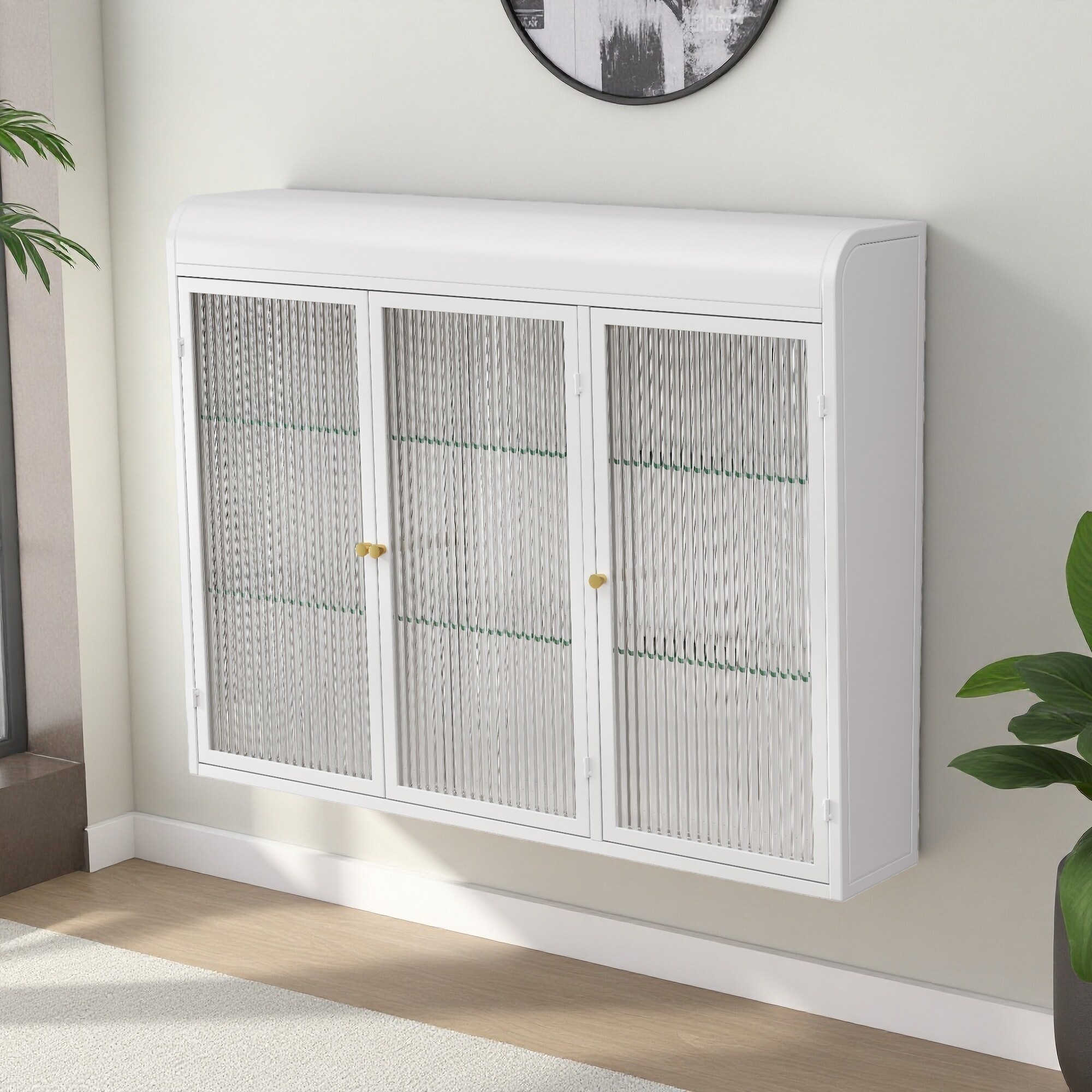 3-Door Wall-Mounted Glass Cabinet, Stylish Storage Solution for Kitchen, Living Room, Bathroom