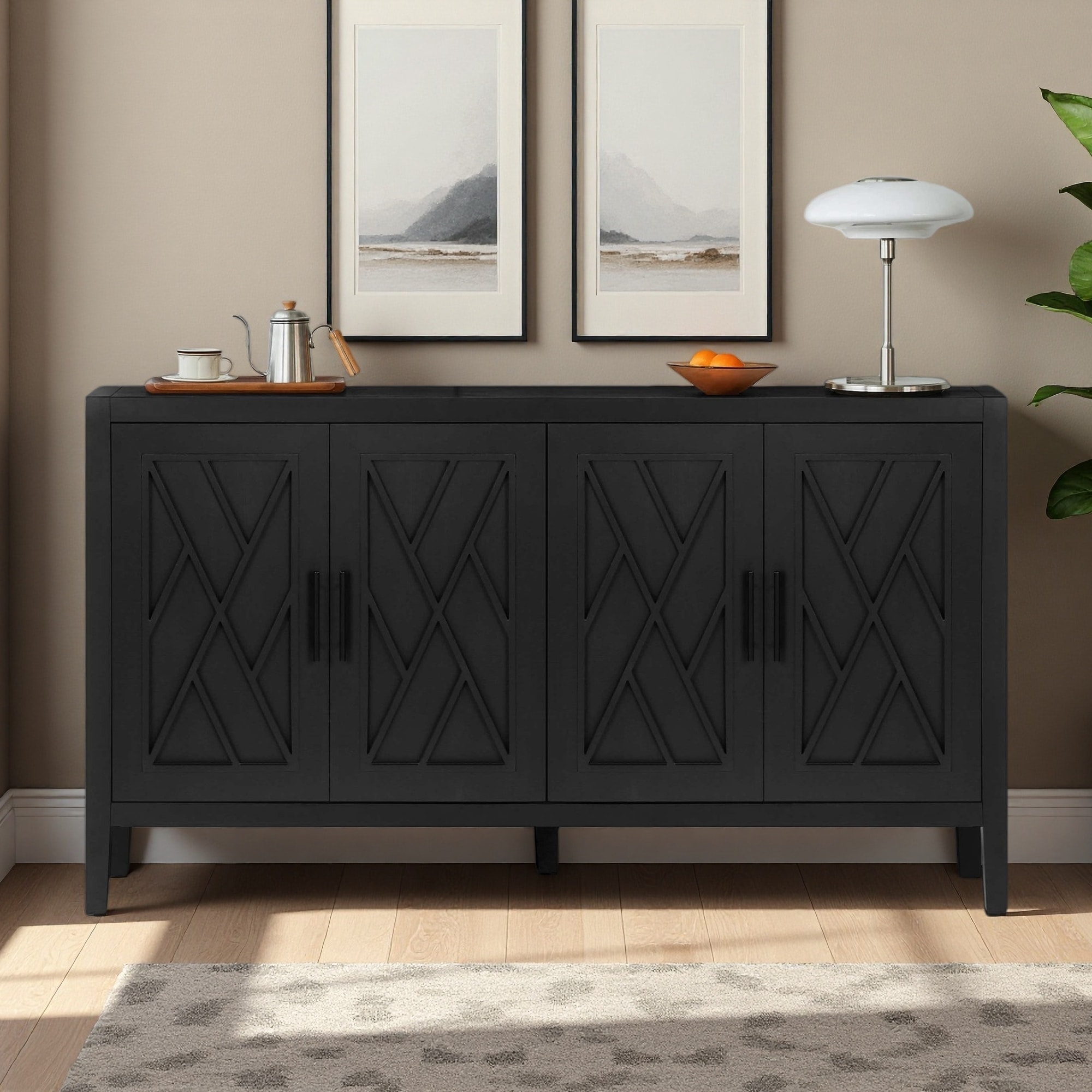 Modern Farmhouse 4-Door Sideboard Buffet with Adjustable Shelf