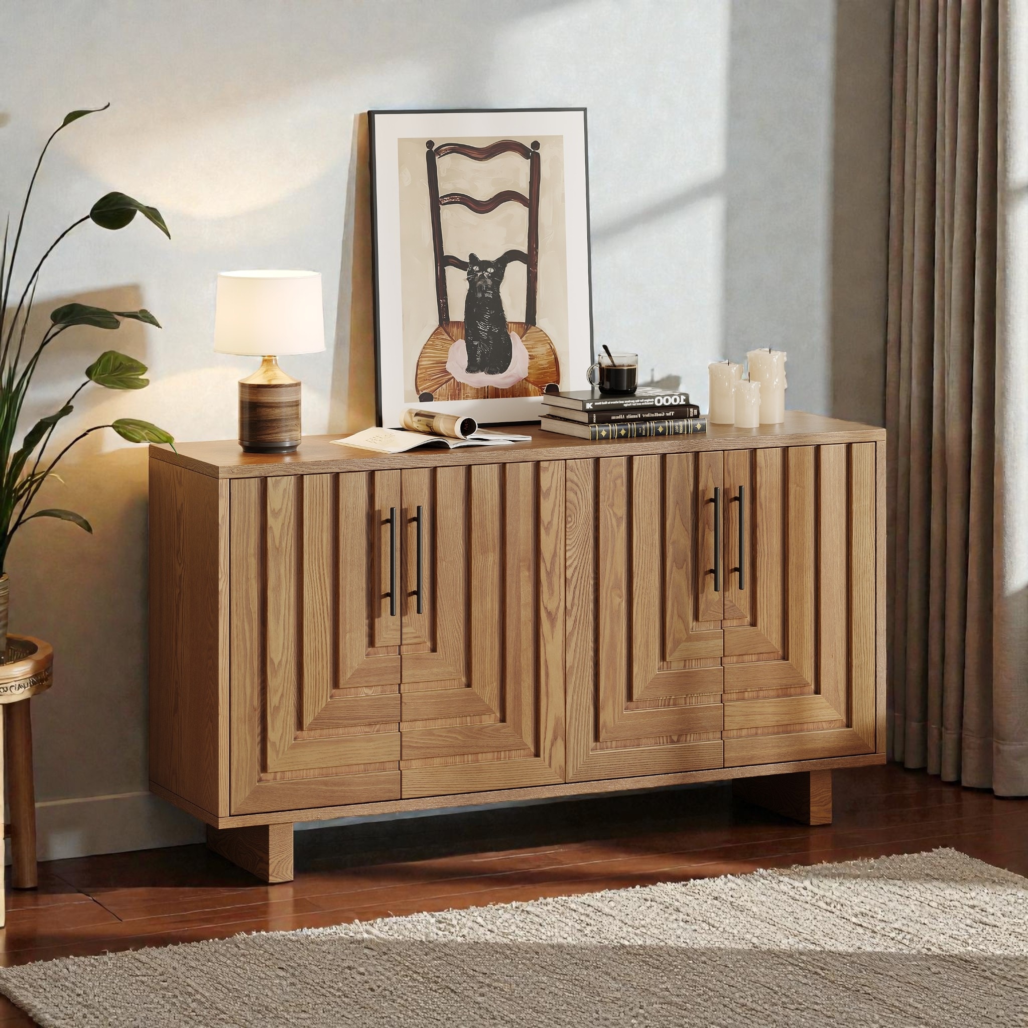 59-inch modern wavy sideboard, curved contour design storage cabinet, 4-door cabinet with storage function