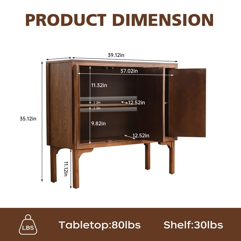 Mid-Century Modern Sideboard Buffet with Doors and Shelves, Boho Wooden Storage Cabinet for Living Room or Entryway